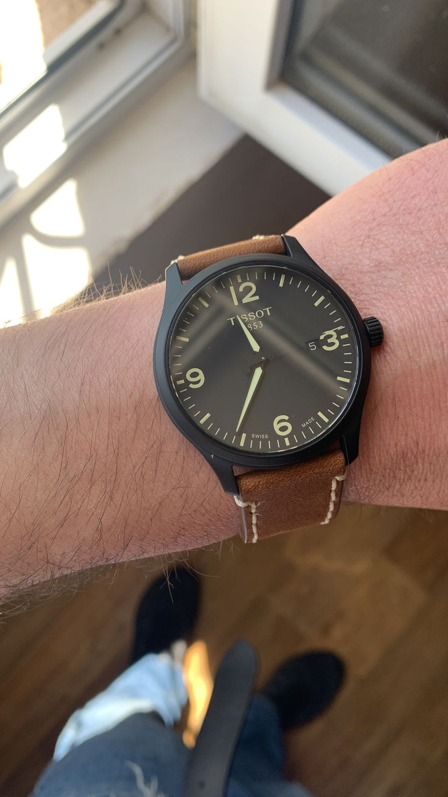 Массивный корпус сделан из нержавеющей стали с PVD-покрытием, защитный слой устойчив к износу и появлению царапин. Необычный кожаный ремешок с белой прострочкой напоминает нам о сотрудничестве Tissot с областью спорта. Кварцевый механизм с высокой точностью хода. Покрытие Superluminova. Сапфировое стекло. Водонепроницаемость 100 метров. Габариты: 42 x 42 x 8,9 мм.