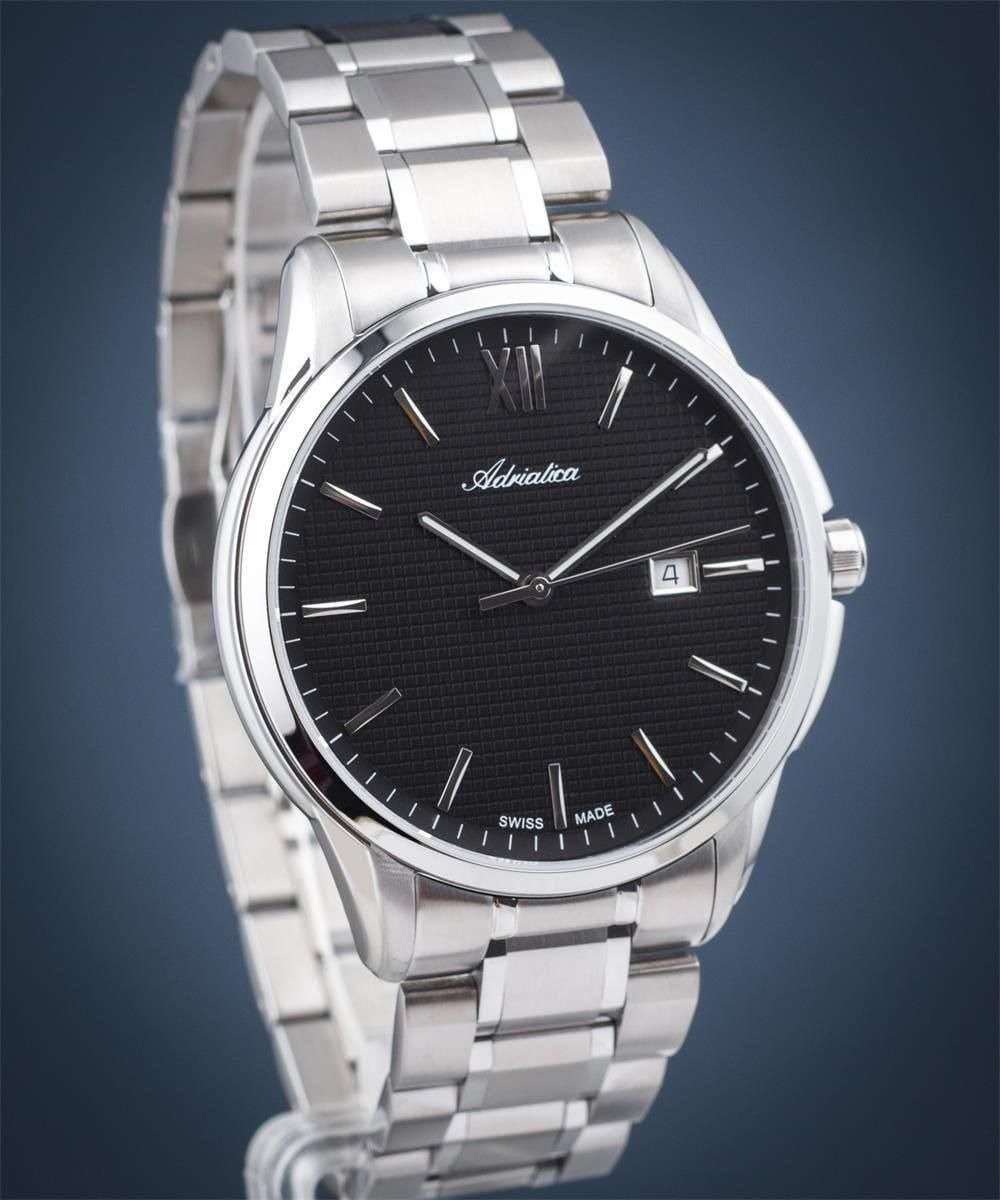 Часы Adriatica A1290.5164Q представляют собой идеальное сочетание элегантности и функциональности, разработанное для современных мужчин. Их стильный черный циферблат защищен сапфировым стекломСапфировое стеклоПрочный и надёжный материал из кристалла сапфира синтетического происхождения, характеризующийся особой твёрдостью и устойчивостью к царапинам и повреждениям., что придает дополнительную устойчивость к царапинам. Корпус из нержавеющей стали подчеркивает их изысканность и долговечность. Надежный кварцевый механизм с калибром ETA F06 (PreciDrive) гарантирует точность времени, а водозащита WR 50 (5 ATM) обеспечивает защиту от воды в различных условиях. Браслет из нержавеющей стали с застежкой «бабочка»Застёжка "бабочка"Такой вид застёжки дополняется предохранителями, помогающими избежать случайного раскрытия браслета. Обладают изящным исполнением. гармонично дополняет общий дизайн и обеспечивает комфортное ношение на запястье. Часы оснащены функцией отображения даты в окошке в положении 3 часа, что добавляет практичности в повседневной жизни. Люминесцентное покрытиеЛюминесцентное покрытиеПозволяет считывать показания времени в темноте. Производители наносят на стрелки, часовые индексы, безель или поверхность циферблата светонакопительный состав, дающий холодное свечение. на стрелках и метках обеспечивает отличную видимость в темноте.
