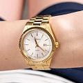 Женские кварцевые часы Adriatica A3090.1113QXL — изысканная швейцарская классика с тёплым золотым оттенком. Круглый корпус размером 36 мм из стали с PVD-покрытиемPVDУльтратонкое покрытие наносится в технике вакуумного напыления, сочетает в себе нитрид титана особой прочности со слоем золота или оксида хрома. Несёт в себе декоративную или защитную функцию. цвета жёлтого золота, циферблат с солнечной текстурой Sunray и штрихами, окошко даты в положении 3 часов. Стекло — минеральноеМинеральное стеклоМинеральное стекло представляет собой искусственно выращенный минерал кварца. Такое стекло отличается особой устойчивостью к повреждениям и царапинам. Уступает по некоторым качествам сапфировому стеклу. с сапфировым покрытиемСапфировое стеклоПрочный и надёжный материал из кристалла сапфира синтетического происхождения, характеризующийся особой твёрдостью и устойчивостью к царапинам и повреждениям.. Механизм — швейцарский кварцевый Ronda 785. Водонепроницаемость 50 м. Рифлёный безельБезельВнешний ободок, закрепляющий стекло. В спортивных часах так называется поворотное кольцо с делениями на циферблате, выполняет роль таймера – замеряет отрезки времени на шкале. Неподвижный безель – элемент декора. Однонаправленно вращающийся безель на дайверских часах позволяет фиксировать моменты погружения и выныривания на поверхность. и завинчивающаяся заводная головка подчёркивают внимание к деталям. Браслет — стальной с PVD-покрытиемPVDУльтратонкое покрытие наносится в технике вакуумного напыления, сочетает в себе нитрид титана особой прочности со слоем золота или оксида хрома. Несёт в себе декоративную или защитную функцию. на раскладной застёжкеРаскладная застёжкаТакой тип застёжки используется только на браслетах из металла. Она никогда не раскрывается полностью, происходит разделение на 2 и более частей. Раскладывающая застёжка снизит вероятность потери часов к минимуму.. Идеальный выбор для тех, кто ценит швейцарское качество и элегантный женственный стиль.
