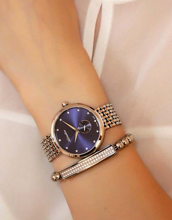 Часы Adriatica A3724.5145Q представляют собой гармоничное сочетание швейцарского качества и изысканного дизайна, подходящие для ценителей стильных аксессуаров. Их синий циферблат, украшенный 12 фианитами, а секундная стрелка вынесена на отдельный циферблат, что придает особую утонченность и элегантность. Корпус диаметром 34 мм и толщиной 7 мм выполнен из нержавеющей стали, что обеспечивает долговечность и надежность. Кварцевый механизм гарантирует точность хода, а водозащита 30WR защищает часы от случайных брызг. Браслет из нержавеющей стали с ювелирной застежкой обеспечивает комфортное ношение и добавляет изделию дополнительную элегантность. Минеральное стеклоМинеральное стеклоМинеральное стекло представляет собой искусственно выращенный минерал кварца. Такое стекло отличается особой устойчивостью к повреждениям и царапинам. Уступает по некоторым качествам сапфировому стеклу. защищает циферблат от внешних воздействий, сохраняя его безупречный вид. Часы Adriatica A3724.5145Q — это идеальный аксессуар для тех, кто ценит швейцарское качество и утонченный стиль.