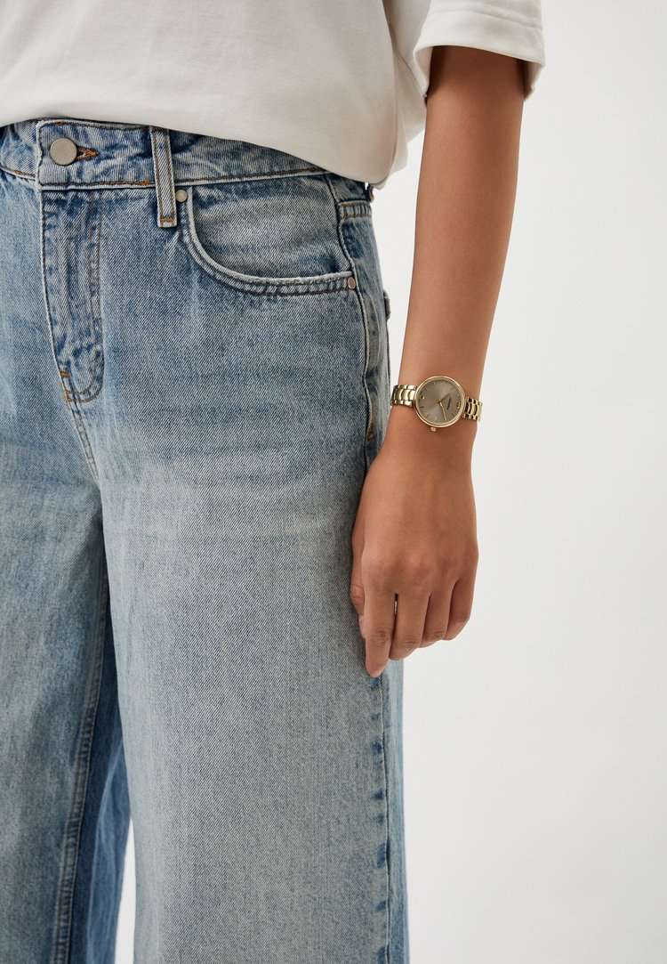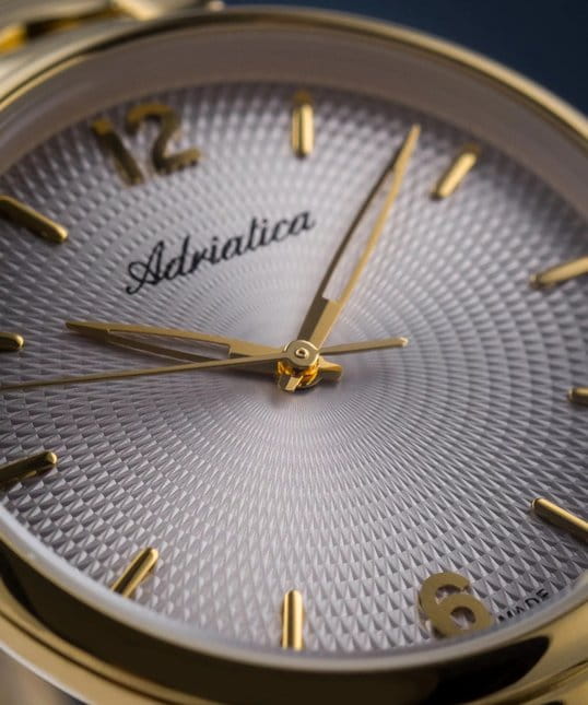 Женские часы Adriatica Essence A3790.1157Q имеют кварцевый механизм с высокой точностью. Минеральное стеклоМинеральное стеклоМинеральное стекло представляет собой искусственно выращенный минерал кварца. Такое стекло отличается особой устойчивостью к повреждениям и царапинам. Уступает по некоторым качествам сапфировому стеклу. обеспечивает надежную защиту серого циферблата, на котором расположились метки в виде штрихов и арабские цифры 6 и 12. Корпус часов изготовлен из нержавеющей стали с золотистым PVDPVDУльтратонкое покрытие наносится в технике вакуумного напыления, сочетает в себе нитрид титана особой прочности со слоем золота или оксида хрома. Несёт в себе декоративную или защитную функцию. покрытием, что придает часам утонченный и стильный вид. Браслет из нержавеющей стали с золотистым PVDPVDУльтратонкое покрытие наносится в технике вакуумного напыления, сочетает в себе нитрид титана особой прочности со слоем золота или оксида хрома. Несёт в себе декоративную или защитную функцию. покрытием и раскладной застёжкойРаскладная застёжкаТакой тип застёжки используется только на браслетах из металла. Она никогда не раскрывается полностью, происходит разделение на 2 и более частей. Раскладывающая застёжка снизит вероятность потери часов к минимуму., гармонично дополняет общий дизайн и обеспечивает комфортное ношение на запястье. Надежный кварцевый механизм с калибром RONDA 763 гарантирует точность времени, а водозащита WR 30 (3 ATM) делает эти часы практичным выбором для повседневного использования.