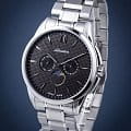 Мужские часы Adriatica Moonphase A8283.5166QF имеют кварцевый механизм с высокой точностью. Сапфировое стеклоСапфировое стеклоПрочный и надёжный материал из кристалла сапфира синтетического происхождения, характеризующийся особой твёрдостью и устойчивостью к царапинам и повреждениям. устойчивое к появлению царапин, обладающее высокой прозрачностью защищает текстурированный черный циферблат с метками в виде штрихов и римской цифры XII. Часы оснащены тремя дополнительными циферблатами с функциями отображения числа месяца, дня недели и фазы Луны, что придает им неповторимый характер. Корпус часов изготовлен из нержавеющей стали, что придает часам надежности. Браслет из нержавеющей стали с раскладной застёжкойРаскладная застёжкаТакой тип застёжки используется только на браслетах из металла. Она никогда не раскрывается полностью, происходит разделение на 2 и более частей. Раскладывающая застёжка снизит вероятность потери часов к минимуму., гармонично дополняет общий дизайн и обеспечивает комфортное ношение на запястье. Надежный кварцевый механизм с калибром RONDA 706 гарантирует точность времени, а водозащита 50 метров, что позволит защитить корпус от случайных брызг или капель дождя.