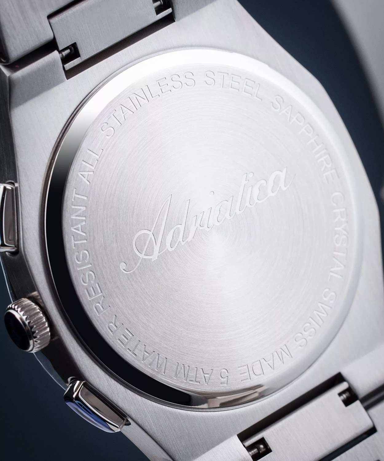 Мужские швейцарские часы-хронографХронографФункция позволяет измерять отрезки времени с особой точностью: часы, минуты, секунды. Верным признаком хронографа является наличие на циферблате 3 дополнительных окошек-счётчиков. с секундомеромСекундомерСекундоме́р — прибор, способный измерять интервалы времени с точностью до долей секунды. Adriatica Premiere A8326.5114CH воплощают в себе элегантность и функциональность, идеально подходящие для современных мужчин, ценящих швейцарское качество. Их черный циферблат защищенный сапфировым стекломСапфировое стеклоПрочный и надёжный материал из кристалла сапфира синтетического происхождения, характеризующийся особой твёрдостью и устойчивостью к царапинам и повреждениям., заключен в корпус из нержавеющей стали диаметром 40 мм и толщиной 10 мм. Надежный кварцевый механизм с калибром Ronda 5040.B обеспечивает высокую точность, а водозащита 5 ATM делает часы устойчивыми к воздействию воды. Стальной браслет с раскладной застёжкойРаскладная застёжкаТакой тип застёжки используется только на браслетах из металла. Она никогда не раскрывается полностью, происходит разделение на 2 и более частей. Раскладывающая застёжка снизит вероятность потери часов к минимуму. обеспечивает комфортное и надежное ношение. Фактурный циферблат с метками в виде штрихов дополнен рисунком в клетку, а окошко даты находится в положении 12 часов, что добавляет практичности в повседневной жизни. Люминесцентное покрытиеЛюминесцентное покрытиеПозволяет считывать показания времени в темноте. Производители наносят на стрелки, часовые индексы, безель или поверхность циферблата светонакопительный состав, дающий холодное свечение. на стрелках и метках обеспечивает отличную видимость в темноте.