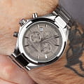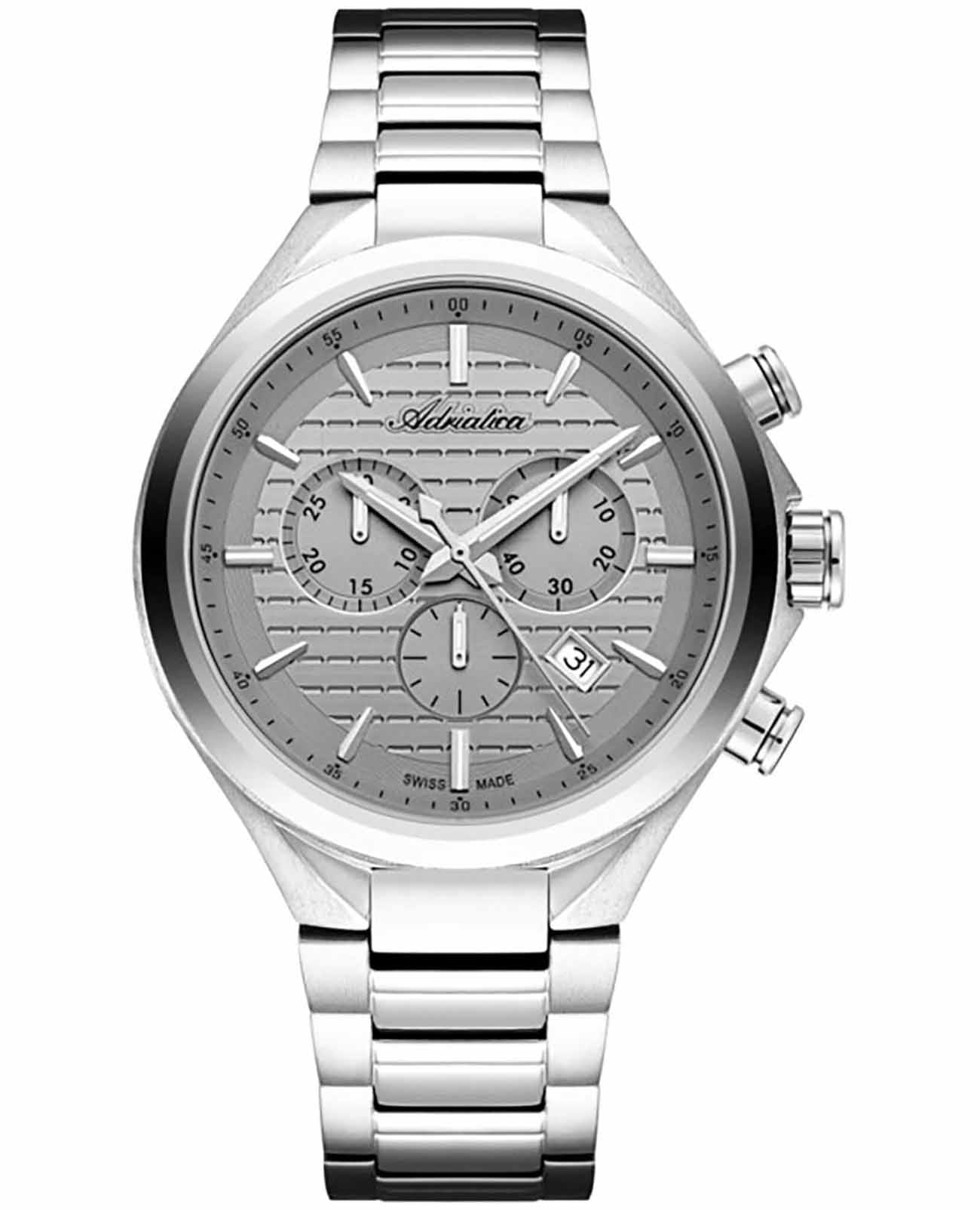 Мужские швейцарские часы-хронографХронографФункция позволяет измерять отрезки времени с особой точностью: часы, минуты, секунды. Верным признаком хронографа является наличие на циферблате 3 дополнительных окошек-счётчиков. Adriatica Passion A8334.5117CH воплощают в себе элегантность и функциональность, их выбирают целеустремленные мужчины, которые знают цену времени. Серый циферблат часов, защищенный сапфировым стекломСапфировое стеклоПрочный и надёжный материал из кристалла сапфира синтетического происхождения, характеризующийся особой твёрдостью и устойчивостью к царапинам и повреждениям., заключен в корпус из нержавеющей стали диаметром 46 мм и толщиной 11 мм. Надежный кварцевый механизм с калибром Ronda 5030 обеспечивает высокую точность, а водозащита 5 ATM делает часы устойчивыми к воздействию воды. Стальной браслет c раскладной застёжкойРаскладная застёжкаТакой тип застёжки используется только на браслетах из металла. Она никогда не раскрывается полностью, происходит разделение на 2 и более частей. Раскладывающая застёжка снизит вероятность потери часов к минимуму. обеспечивает комфортное и надежное ношение. Циферблат с метками в виде штрихов имеет 3 дополнительных циферблата, а также окошко даты в положении «4:30» , что добавляет практичности в повседневной жизни.