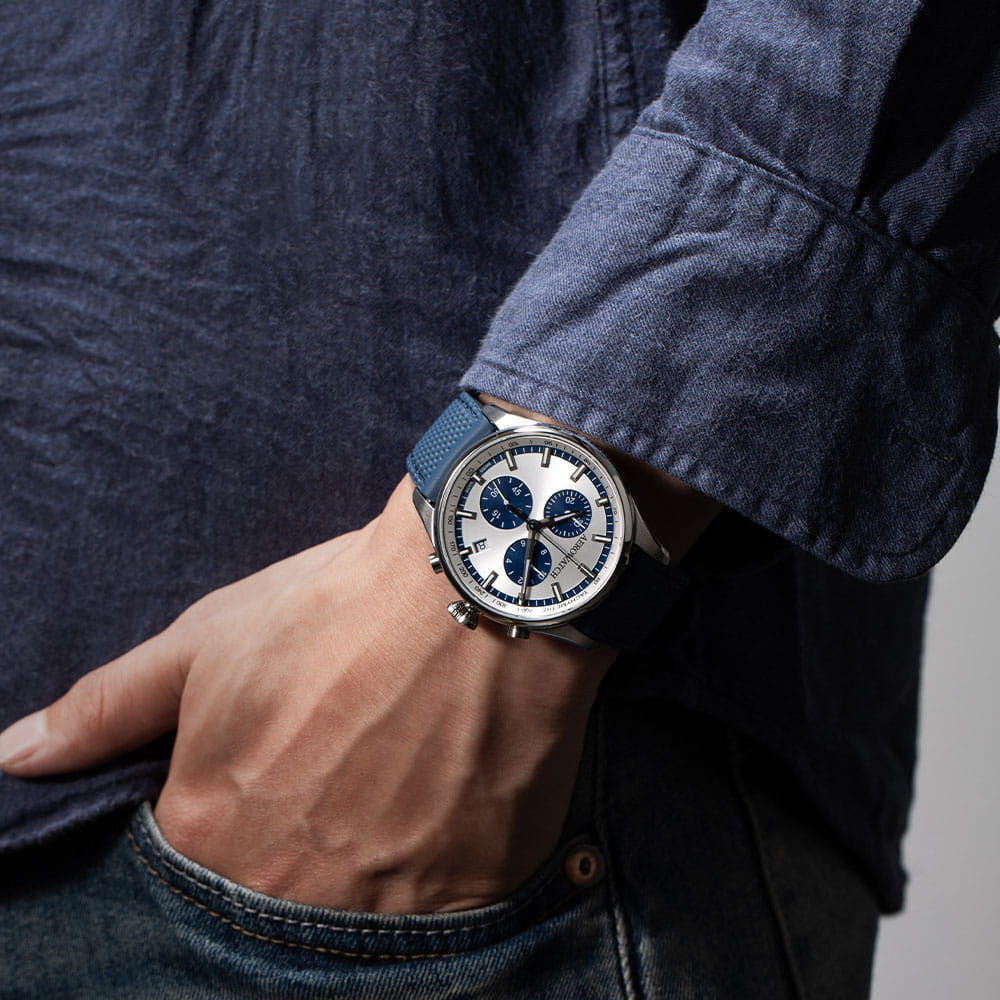 Мужские швейцарские часы-хронографХронографФункция позволяет измерять отрезки времени с особой точностью: часы, минуты, секунды. Верным признаком хронографа является наличие на циферблате 3 дополнительных окошек-счётчиков. Aerowatch Les Grandes Classiques 79990 AA05, кварцевый механизм с высокой точностью. Сапфировое стеклоСапфировое стеклоПрочный и надёжный материал из кристалла сапфира синтетического происхождения, характеризующийся особой твёрдостью и устойчивостью к царапинам и повреждениям. устойчивое к появлению царапин, обладающее высокой прозрачностью. Корпус изготовлен из нержавеющей стали. На циферблате со шкалой тахиметраТахиметрРазмеченная шкала, располагается на ободке или безеле часов. Тахиметр позволяет рассчитать скорость на определённом участке пути, расстояние измеряется в километрах или милях. расположены 3 счетчика, стрелки и метки с люминесцентным покрытиемЛюминесцентное покрытиеПозволяет считывать показания времени в темноте. Производители наносят на стрелки, часовые индексы, безель или поверхность циферблата светонакопительный состав, дающий холодное свечение., окошко даты в положении 4 часов. Класс водозащиты: 50 метров, позволит защитить корпус от случайных брызг или капель дождя. Кожаный ремешок на стандартной застёжке.