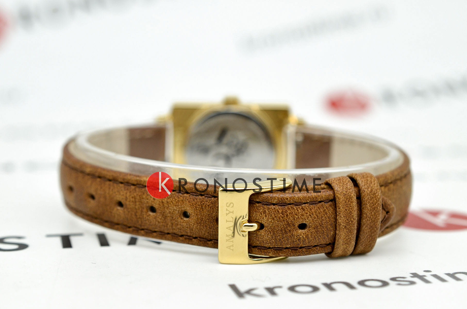 Женские кварцевые часы Amalys из коллекции Hepburn — это элегантный и универсальный аксессуар. Корпус прямоугольной формы размером 23×28 мм выполнен из нержавеющей стали с PVD-покрытиемPVDУльтратонкое покрытие наносится в технике вакуумного напыления, сочетает в себе нитрид титана особой прочности со слоем золота или оксида хрома. Несёт в себе декоративную или защитную функцию. цвета жёлтого золота. Циферблат белого цвета оформлен римскими цифрами и стрелками. Циферблат защищён минеральным стекломМинеральное стеклоМинеральное стекло представляет собой искусственно выращенный минерал кварца. Такое стекло отличается особой устойчивостью к повреждениям и царапинам. Уступает по некоторым качествам сапфировому стеклу.. Часы оснащены коричневым кожаным ремешком на классической пряжке. Водонепроницаемость 30 м позволяет использовать часы в повседневных условиях. Идеальный выбор для тех, кто ценит бельгийское качество и классический дизайн.