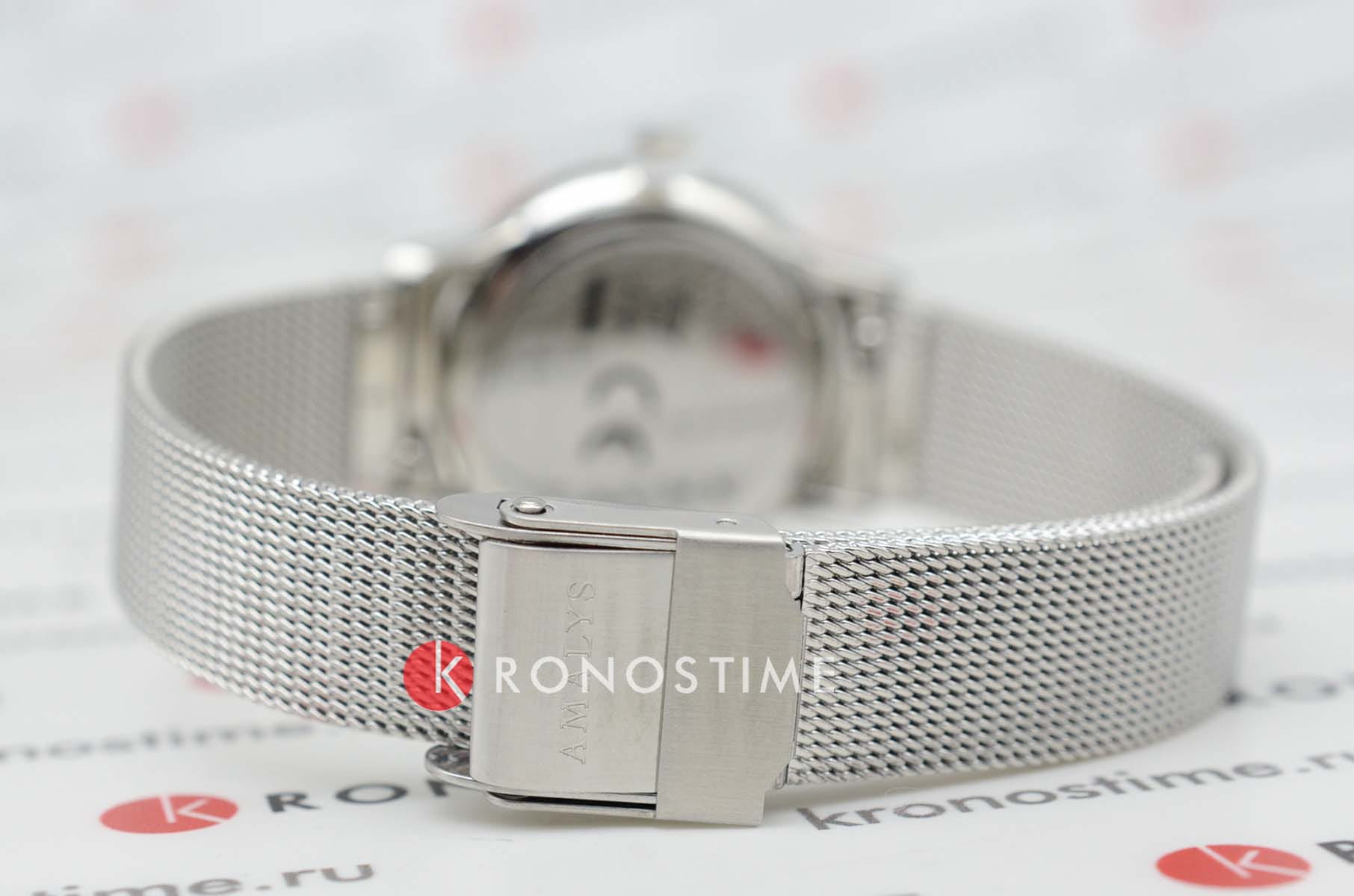 Amalys AMW-166 — женская модель с утончённым классическим дизайном, в которой сочетаются элегантность и практичность. Круглый корпус диаметром 28 мм выполнен из нержавеющей стали, гармонирующим с браслетом шириной 14 мм в том же исполнении. Защитную функцию выполняет сапфировое стеклоСапфировое стеклоПрочный и надёжный материал из кристалла сапфира синтетического происхождения, характеризующийся особой твёрдостью и устойчивостью к царапинам и повреждениям., стойкое к царапинам и сохраняющее прозрачность. Механизм — кварцевый, обеспечивающий точность и стабильность хода. Браслет миланского плетения снабжён раскладным замкомРаскладной замокДанный вариант застежки используется только на часах с металлическим браслетом. Отличительная особенность такого крепления в том, что длина браслета становится универсальной и вы можете самостоятельно отрегулировать нужный вам размер – застежка просто двигается по браслету часов., который сочетает надёжность фиксации и удобство повседневного использования. Водозащита 5 ATM защищает часы от случайных брызг и дождя. Циферблат с римскими индексами и изящными стрелками подчёркивает классическую эстетику модели, делая её уместной как в повседневных образах, так и в торжественной обстановке.