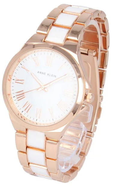 Женские американские часы с минеральным стекломМинеральное стеклоМинеральное стекло представляет собой искусственно выращенный минерал кварца. Такое стекло отличается особой устойчивостью к повреждениям и царапинам. Уступает по некоторым качествам сапфировому стеклу. Anne Klein Metals 3922WTRG, кварцевый механизм с высокой точностью. Класс водозащиты: 30 метров, позволит защитить корпус от случайных брызг или капель дождя. Корпус часов изготовлен из стали с PVD-покрытиемPVDУльтратонкое покрытие наносится в технике вакуумного напыления, сочетает в себе нитрид титана особой прочности со слоем золота или оксида хрома. Несёт в себе декоративную или защитную функцию.. Стальной браслет на раскладной застёжкеРаскладная застёжкаТакой тип застёжки используется только на браслетах из металла. Она никогда не раскрывается полностью, происходит разделение на 2 и более частей. Раскладывающая застёжка снизит вероятность потери часов к минимуму. с PVD-покрытиемPVDУльтратонкое покрытие наносится в технике вакуумного напыления, сочетает в себе нитрид титана особой прочности со слоем золота или оксида хрома. Несёт в себе декоративную или защитную функцию. и эмалевыми вставками.