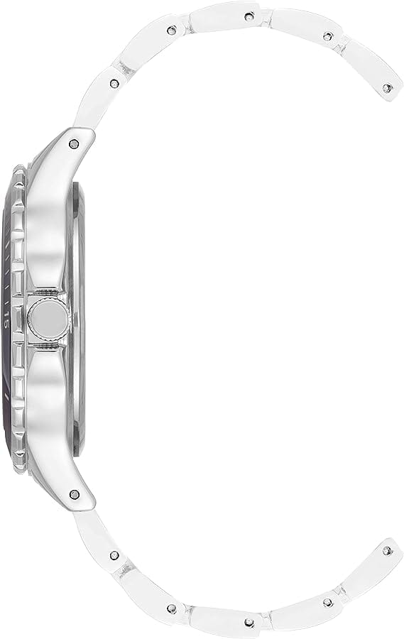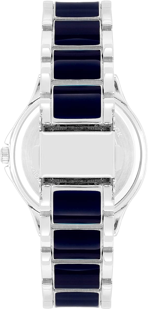 Женские американские наручные часы Anne Klein Metals 3953NVSV, кварцевый механизм с высокой точностью. Класс водозащиты: 30 метров, позволит защитить корпус от случайных брызг или капель дождя. Минеральное стеклоМинеральное стеклоМинеральное стекло представляет собой искусственно выращенный минерал кварца. Такое стекло отличается особой устойчивостью к повреждениям и царапинам. Уступает по некоторым качествам сапфировому стеклу. устойчивое к мелким механическим повреждениям. Корпус часов изготовлен из стали. Стальной браслет на раскладной застёжкеРаскладная застёжкаТакой тип застёжки используется только на браслетах из металла. Она никогда не раскрывается полностью, происходит разделение на 2 и более частей. Раскладывающая застёжка снизит вероятность потери часов к минимуму. и вставками эмали. БезельБезельВнешний ободок, закрепляющий стекло. В спортивных часах так называется поворотное кольцо с делениями на циферблате, выполняет роль таймера – замеряет отрезки времени на шкале. Неподвижный безель – элемент декора. Однонаправленно вращающийся безель на дайверских часах позволяет фиксировать моменты погружения и выныривания на поверхность. с PVD-покрытиемPVDУльтратонкое покрытие наносится в технике вакуумного напыления, сочетает в себе нитрид титана особой прочности со слоем золота или оксида хрома. Несёт в себе декоративную или защитную функцию..