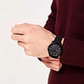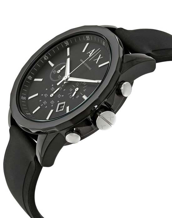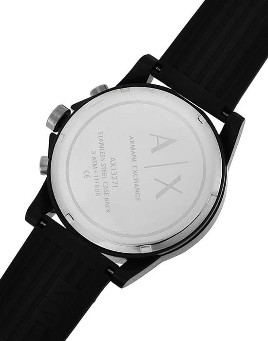 Американские мужские часы Armani Exchange Cayde AX1326, кварцевый механизм с высокой точностью. Класс водозащиты: 50 метров, позволит защитить корпус от случайных брызг или капель дождя. Корпус часов изготовлен из пластика, черного цвета.