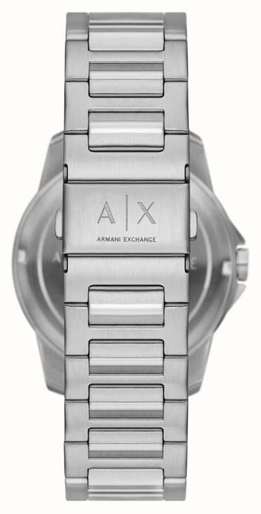 Мужские наручные часы с минеральным стекломМинеральное стеклоМинеральное стекло представляет собой искусственно выращенный минерал кварца. Такое стекло отличается особой устойчивостью к повреждениям и царапинам. Уступает по некоторым качествам сапфировому стеклу. Armani Exchange Banks AX1736, кварцевый механизм с высокой точностью. Класс водозащиты: 50 метров, позволит защитить корпус от случайных брызг или капель дождя. Корпус часов изготовлен из стали. Модель имеет серый циферблат с эффектом луны, серебряные часовую, минутную и секундную стрелки. Циферблат оснащен серебряными индексами в виде жезлов, а также дополнительными циферблатами фаз Луны, дня недели и даты. Стальной браслет на раскладной застёжкеРаскладная застёжкаТакой тип застёжки используется только на браслетах из металла. Она никогда не раскрывается полностью, происходит разделение на 2 и более частей. Раскладывающая застёжка снизит вероятность потери часов к минимуму..