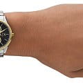 Мужские наручные часы с минеральным стекломМинеральное стеклоМинеральное стекло представляет собой искусственно выращенный минерал кварца. Такое стекло отличается особой устойчивостью к повреждениям и царапинам. Уступает по некоторым качествам сапфировому стеклу. Armani Exchange Dante AX1865, кварцевый механизм с высокой точностью. Класс водозащиты: 50 метров, позволит защитить корпус от случайных брызг или капель дождя. Корпус часов изготовлен из стали с IP-покрытиемIP-покрытиеМетод ионного напыления. Демонстрирует повышенную устойчивость к истиранию, окислению и химическим веществам. Под воздействием высокого давления и температуры около 1500°C молекулы металла надёжно соединяются с частицами корпуса часов.. Стальной браслет на раскладной застёжкеРаскладная застёжкаТакой тип застёжки используется только на браслетах из металла. Она никогда не раскрывается полностью, происходит разделение на 2 и более частей. Раскладывающая застёжка снизит вероятность потери часов к минимуму. с IP-покрытиемIP-покрытиеМетод ионного напыления. Демонстрирует повышенную устойчивость к истиранию, окислению и химическим веществам. Под воздействием высокого давления и температуры около 1500°C молекулы металла надёжно соединяются с частицами корпуса часов.. БезельБезельВнешний ободок, закрепляющий стекло. В спортивных часах так называется поворотное кольцо с делениями на циферблате, выполняет роль таймера – замеряет отрезки времени на шкале. Неподвижный безель – элемент декора. Однонаправленно вращающийся безель на дайверских часах позволяет фиксировать моменты погружения и выныривания на поверхность. с IP-покрытиемIP-покрытиеМетод ионного напыления. Демонстрирует повышенную устойчивость к истиранию, окислению и химическим веществам. Под воздействием высокого давления и температуры около 1500°C молекулы металла надёжно соединяются с частицами корпуса часов..