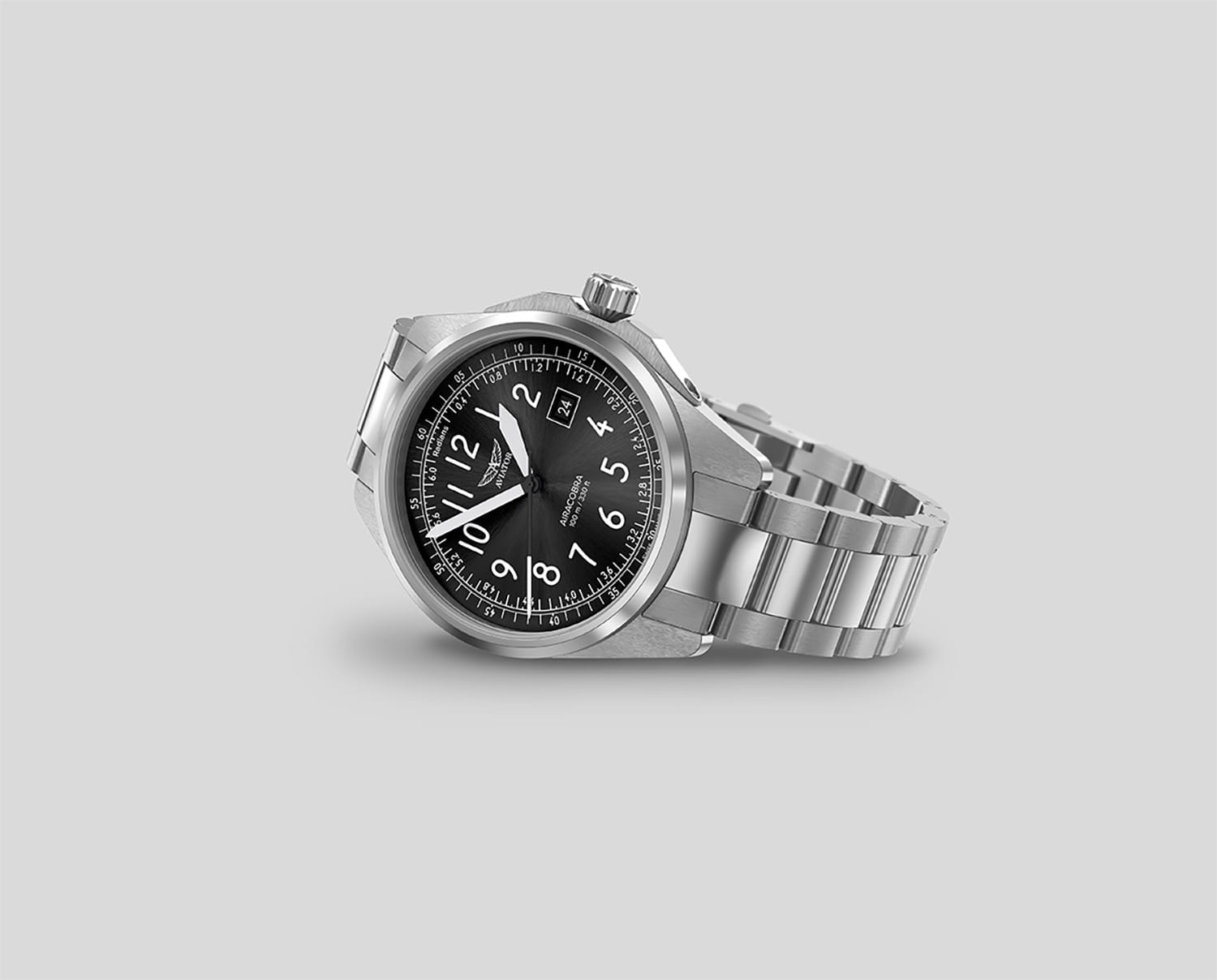 Aviator Airacobra 43 Type B V.1.38.0.322.5 — надёжные швейцарские пилотские часы с насыщенным функционалом и строгим авиационным дизайном. Корпус диаметром 42,8 мм выполнен из нержавеющей стали 316L. Элегантный циферблат имеет крупные арабские цифры. Стрелки и метки покрыты люминесцентным покрытиемЛюминесцентное покрытиеПозволяет считывать показания времени в темноте. Производители наносят на стрелки, часовые индексы, безель или поверхность циферблата светонакопительный состав, дающий холодное свечение. Superluminova — это обеспечивает отличную читаемость в любых условиях. Окошко даты расположено у отметки «3 часа». На борту установлен швейцарский кварцевый механизм, способный с высокой точностью отображать время, дату. В механизме 4 камня. Изысканный циферблат защищён стойким сапфировым стекломСапфировое стеклоПрочный и надёжный материал из кристалла сапфира синтетического происхождения, характеризующийся особой твёрдостью и устойчивостью к царапинам и повреждениям. с антибликовым покрытиемАнтибликовое покрытиеСлой оксида металла в 0,13-0,3 микрон, благодаря которому стекло часов не бликует и не отражает свет. Антибликовое покрытие уменьшает отражение света в 10 раз, обеспечивая отличную читаемость показателей циферблата., завинчивающаяся заводная головка и задняя крышка обеспечивают уровень водозащиты до 100 метров. Стальной браслет с раскладной застёжкойРаскладная застёжкаТакой тип застёжки используется только на браслетах из металла. Она никогда не раскрывается полностью, происходит разделение на 2 и более частей. Раскладывающая застёжка снизит вероятность потери часов к минимуму. обеспечивает удобство и надёжную фиксацию. Airacobra 43 Type B — инструментальные пилотские часы для тех, кто ценит надёжность, точность и удобную функциональность второго часового пояса в эстетике классических авиационных хронометров. Лимитированная серия.