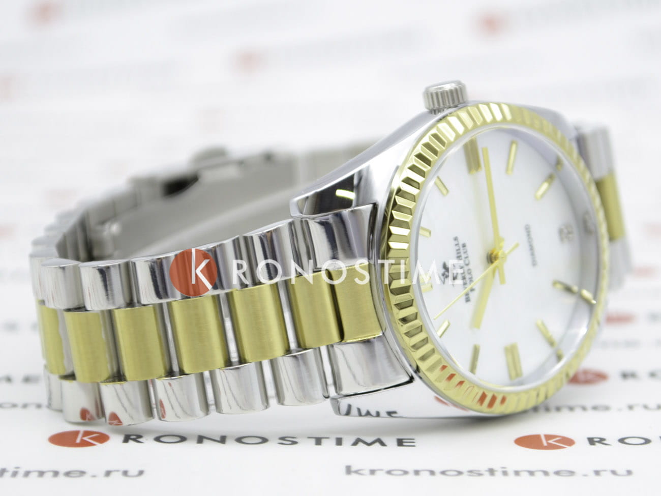 Женские часы Beverly Hills Polo BP3172C.220 с надёжным кварцевым механизмом. Минеральное стеклоМинеральное стеклоМинеральное стекло представляет собой искусственно выращенный минерал кварца. Такое стекло отличается особой устойчивостью к повреждениям и царапинам. Уступает по некоторым качествам сапфировому стеклу. устойчивое к появлению царапин, обладающее высокой прозрачностью. Класс водозащиты: 30 метров, позволит защитить корпус от случайных брызг или капель дождя. Корпус часов изготовлен из стали. Стальной браслет на раскладной застёжкеРаскладная застёжкаТакой тип застёжки используется только на браслетах из металла. Она никогда не раскрывается полностью, происходит разделение на 2 и более частей. Раскладывающая застёжка снизит вероятность потери часов к минимуму.. БезельБезельВнешний ободок, закрепляющий стекло. В спортивных часах так называется поворотное кольцо с делениями на циферблате, выполняет роль таймера – замеряет отрезки времени на шкале. Неподвижный безель – элемент декора. Однонаправленно вращающийся безель на дайверских часах позволяет фиксировать моменты погружения и выныривания на поверхность. с с PVD-покрытиемPVDУльтратонкое покрытие наносится в технике вакуумного напыления, сочетает в себе нитрид титана особой прочности со слоем золота или оксида хрома. Несёт в себе декоративную или защитную функцию.. Циферблат инкрустирован бриллиантом.