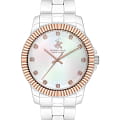 Женские наручные часы Beverly Hills Polo Club Quartz Ceramic BP3622X.530 с надёжным кварцевым механизмом. Минеральное стеклоМинеральное стеклоМинеральное стекло представляет собой искусственно выращенный минерал кварца. Такое стекло отличается особой устойчивостью к повреждениям и царапинам. Уступает по некоторым качествам сапфировому стеклу. устойчивое к мелким механическим повреждениям. Корпус часов изготовлен из керамики. БезельБезельВнешний ободок, закрепляющий стекло. В спортивных часах так называется поворотное кольцо с делениями на циферблате, выполняет роль таймера – замеряет отрезки времени на шкале. Неподвижный безель – элемент декора. Однонаправленно вращающийся безель на дайверских часах позволяет фиксировать моменты погружения и выныривания на поверхность. с IP-покрытиемIP-покрытиеМетод ионного напыления. Демонстрирует повышенную устойчивость к истиранию, окислению и химическим веществам. Под воздействием высокого давления и температуры около 1500°C молекулы металла надёжно соединяются с частицами корпуса часов.. Класс водозащиты: 50 метров, позволит защитить корпус от случайных брызг или капель дождя. Керамический браслет на застёжке-бабочке с кнопкамиЗастёжка "бабочка"Такой вид застёжки дополняется предохранителями, помогающими избежать случайного раскрытия браслета. Обладают изящным исполнением. .