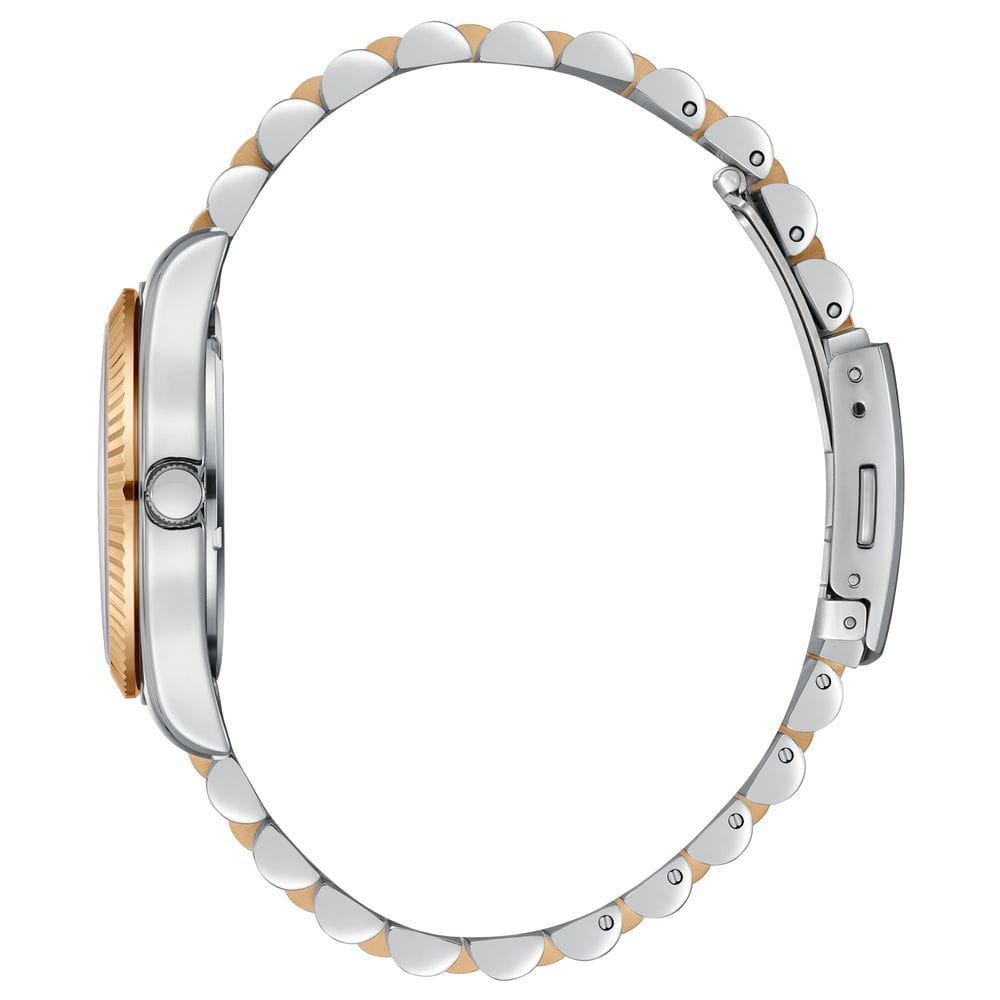 Beverly Hills Polo Club BP3169C.560 — женские часы, сочетающие изящество и функциональность в компактном формате. Корпус из суперметалла диаметром 34 мм и браслет. Циферблат украшен тремя субциферблатами — индикаторы даты, дня недели и 24‑часового формата — что придаёт модели утончённую многозадачность. Стрелки и метки выполнены в золоте, подчёркивая элегантность и визуальную лёгкость. БезельБезельВнешний ободок, закрепляющий стекло. В спортивных часах так называется поворотное кольцо с делениями на циферблате, выполняет роль таймера – замеряет отрезки времени на шкале. Неподвижный безель – элемент декора. Однонаправленно вращающийся безель на дайверских часах позволяет фиксировать моменты погружения и выныривания на поверхность. с IP‑покрытиемIP-покрытиеМетод ионного напыления. Демонстрирует повышенную устойчивость к истиранию, окислению и химическим веществам. Под воздействием высокого давления и температуры около 1500°C молекулы металла надёжно соединяются с частицами корпуса часов. . Механизм — точный кварцевый, надёжный и неприхотливый, требующий только замены батареи раз в 1–2 года . Циферблат покрыт прочным минеральным стекломМинеральное стеклоМинеральное стекло представляет собой искусственно выращенный минерал кварца. Такое стекло отличается особой устойчивостью к повреждениям и царапинам. Уступает по некоторым качествам сапфировому стеклу., устойчивым к царапинам и сохраняющим безупречный внешний вид . Браслет с IP‑покрытиемIP-покрытиеМетод ионного напыления. Демонстрирует повышенную устойчивость к истиранию, окислению и химическим веществам. Под воздействием высокого давления и температуры около 1500°C молекулы металла надёжно соединяются с частицами корпуса часов. оснащён удобной застёжкой “бабочка”Застёжка "бабочка"Такой вид застёжки дополняется предохранителями, помогающими избежать случайного раскрытия браслета. Обладают изящным исполнением. , обеспечивая плавное и надёжное прилегание. Водозащита на уровне 3 ATM (≈30 м) защищает от брызг и случайных осадков . Beverly Hills Polo Club — утончённый аксессуар для женщин, ценящих стиль, надёжность и изысканные детали, где каждая функция подчёркнута строгой, но изящной эстетикой.