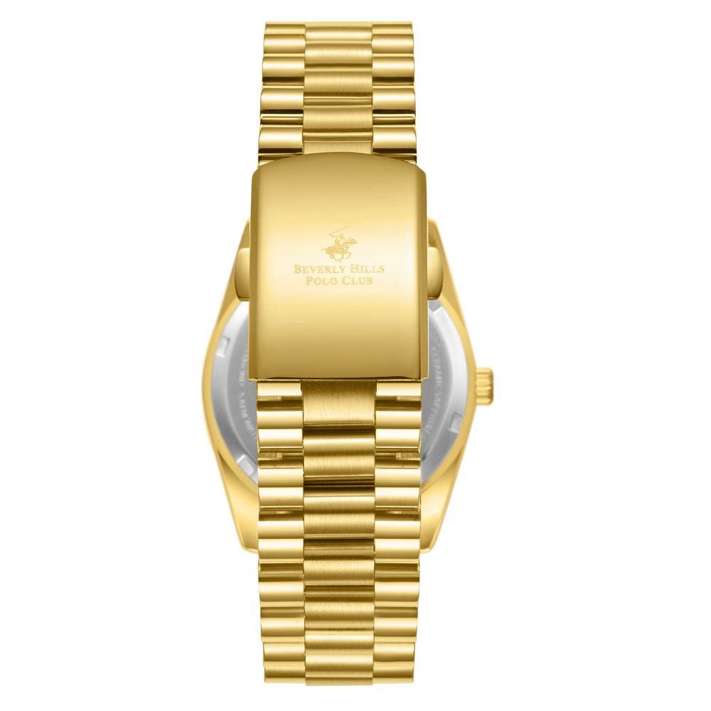 Beverly Hills Polo Club BP3172C.170 — женские часы, сочетающие изящество и функциональность в компактном формате. Корпус из суперметалла диаметром 36 мм и браслет украшены IP‑покрытиемIP-покрытиеМетод ионного напыления. Демонстрирует повышенную устойчивость к истиранию, окислению и химическим веществам. Под воздействием высокого давления и температуры около 1500°C молекулы металла надёжно соединяются с частицами корпуса часов. золотого оттенка, создавая благородный дизайн. Стрелки и метки выполнены в золоте, подчёркивая элегантность и визуальную лёгкость. Механизм — точный кварцевый, надёжный и неприхотливый, требующий только замены батареи раз в 1–2 года . Циферблат покрыт прочным минеральным стекломМинеральное стеклоМинеральное стекло представляет собой искусственно выращенный минерал кварца. Такое стекло отличается особой устойчивостью к повреждениям и царапинам. Уступает по некоторым качествам сапфировому стеклу., устойчивым к царапинам и сохраняющим безупречный внешний вид . Браслет на удобной раскладной застёжкеРаскладная застёжкаТакой тип застёжки используется только на браслетах из металла. Она никогда не раскрывается полностью, происходит разделение на 2 и более частей. Раскладывающая застёжка снизит вероятность потери часов к минимуму., обеспечивая плавное и надёжное прилегание. Водозащита на уровне 3 ATM (≈30 м) защищает от брызг и случайных осадков . Beverly Hills Polo Club — утончённый аксессуар для женщин, ценящих стиль, надёжность и изысканные детали, где каждая функция подчёркнута строгой, но изящной эстетикой.