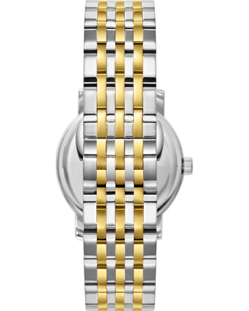 Модель оснащена кварцевым механизмом, обеспечивающим точное измерение времени. Металлический браслет с PVD-покрытиемPVDУльтратонкое покрытие наносится в технике вакуумного напыления, сочетает в себе нитрид титана особой прочности со слоем золота или оксида хрома. Несёт в себе декоративную или защитную функцию. дополнен застёжкой-бабочкойЗастёжка "бабочка"Такой вид застёжки дополняется предохранителями, помогающими избежать случайного раскрытия браслета. Обладают изящным исполнением. , обеспечивающей комфортное ношение и надёжную фиксацию.