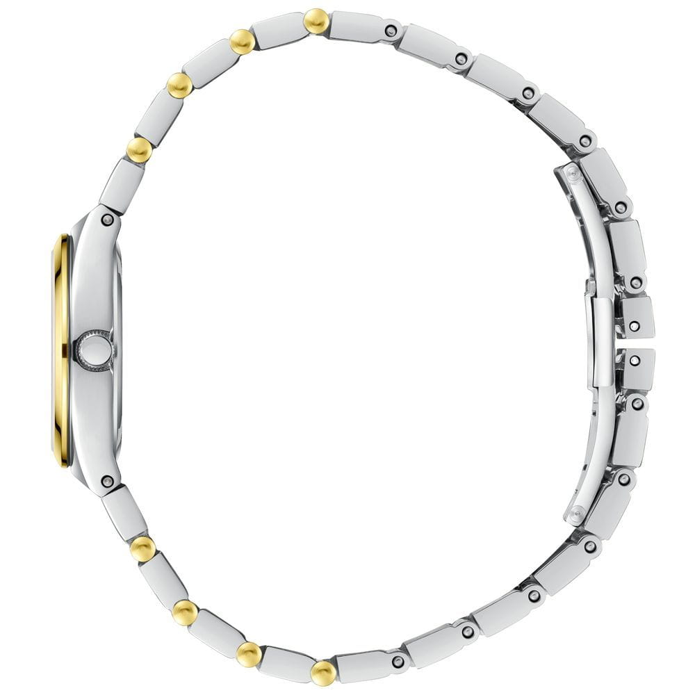 Стальной браслет с IP-покрытиемIP-покрытиеМетод ионного напыления. Демонстрирует повышенную устойчивость к истиранию, окислению и химическим веществам. Под воздействием высокого давления и температуры около 1500°C молекулы металла надёжно соединяются с частицами корпуса часов. на застёжке-бабочке с кнопкамиЗастёжка "бабочка"Такой вид застёжки дополняется предохранителями, помогающими избежать случайного раскрытия браслета. Обладают изящным исполнением. . Часы обладают водозащитой до 30 метров, позволит защитить корпус от случайных брызг или капель дождя. Синтетический бриллиант придает часам неповторимый шарм и изысканность.