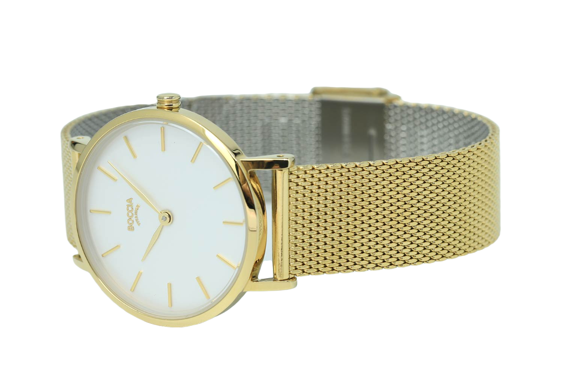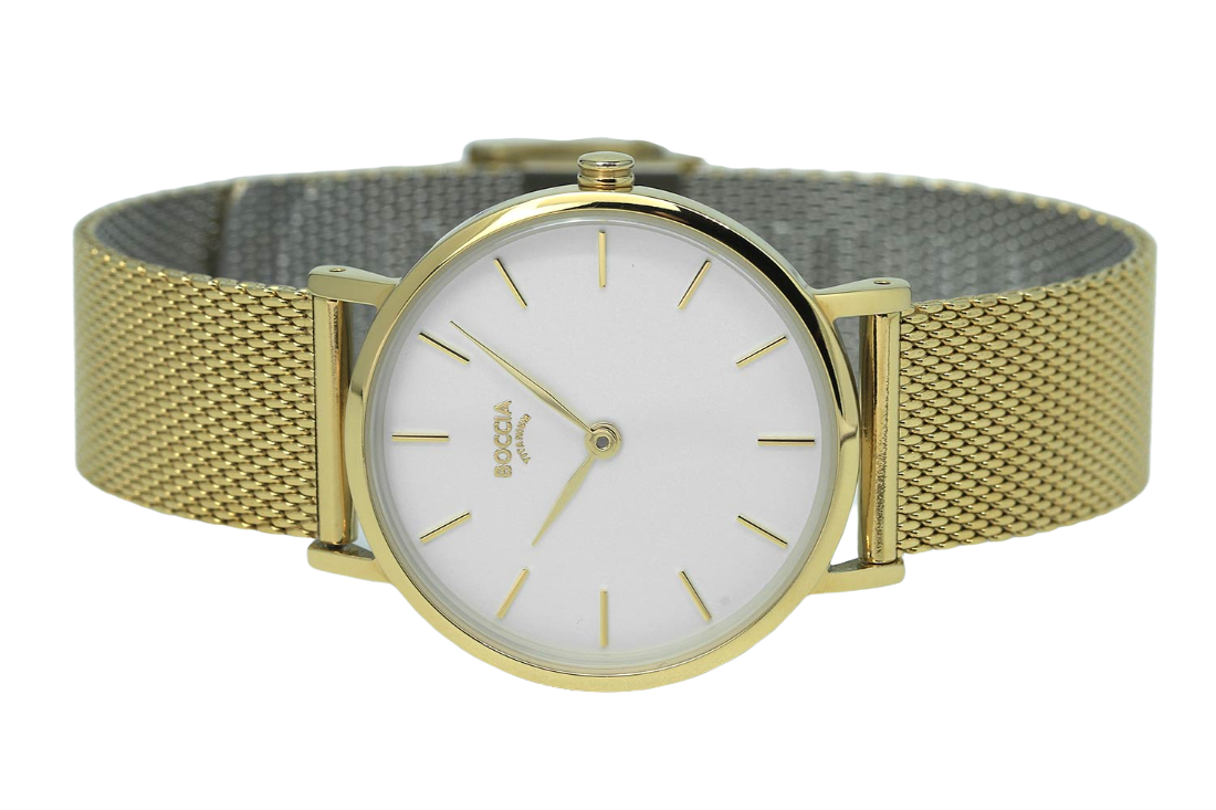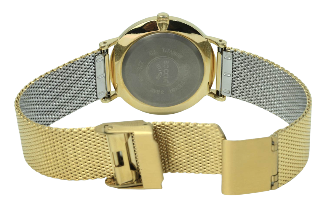 Женские немецкие титановые часы Boccia Titanium 3281-06, кварцевый механизм с высокой точностью. Класс водозащиты: 30 метров, позволит защитить корпус от случайных брызг или капель дождя. Корпус часов изготовлен из титана, золотистого цвета.