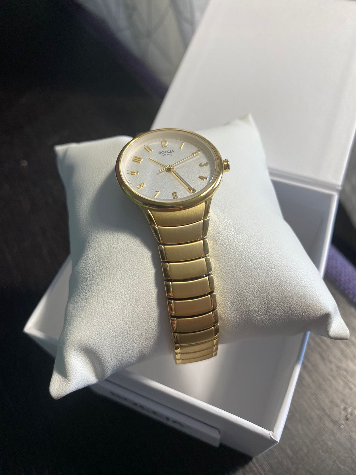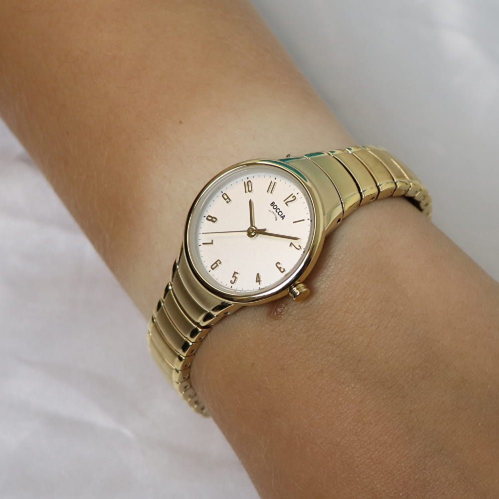 Женские немецкие наручные часы Boccia Titanium 3319-03 с надёжным кварцевым механизмом. Корпус и браслет часов изготовлены из титана с PVD-покрытиемPVDУльтратонкое покрытие наносится в технике вакуумного напыления, сочетает в себе нитрид титана особой прочности со слоем золота или оксида хрома. Несёт в себе декоративную или защитную функцию.. Сапфировое стеклоСапфировое стеклоПрочный и надёжный материал из кристалла сапфира синтетического происхождения, характеризующийся особой твёрдостью и устойчивостью к царапинам и повреждениям. устойчивое к мелким механическим повреждениям. Титановый браслет на раскладной застёжкеРаскладная застёжкаТакой тип застёжки используется только на браслетах из металла. Она никогда не раскрывается полностью, происходит разделение на 2 и более частей. Раскладывающая застёжка снизит вероятность потери часов к минимуму.. Класс водозащиты: 30 метров, позволит защитить корпус от случайных брызг или капель дождя.