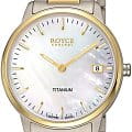 Мужские немецкие титановые часы Boccia Titanium 3341-02, кварцевый механизм с высокой точностью. Сапфировое стеклоСапфировое стеклоПрочный и надёжный материал из кристалла сапфира синтетического происхождения, характеризующийся особой твёрдостью и устойчивостью к царапинам и повреждениям. устойчивое к появлению царапин, обладающее высокой прозрачностью. Корпус изготовлен из титана. Класс водозащиты: 50 метров, позволит защитить корпус от случайных брызг или капель дождя. Титановый браслет на раскладной застёжкеРаскладная застёжкаТакой тип застёжки используется только на браслетах из металла. Она никогда не раскрывается полностью, происходит разделение на 2 и более частей. Раскладывающая застёжка снизит вероятность потери часов к минимуму. с частичным PVD-покрытиемPVDУльтратонкое покрытие наносится в технике вакуумного напыления, сочетает в себе нитрид титана особой прочности со слоем золота или оксида хрома. Несёт в себе декоративную или защитную функцию.. БезельБезельВнешний ободок, закрепляющий стекло. В спортивных часах так называется поворотное кольцо с делениями на циферблате, выполняет роль таймера – замеряет отрезки времени на шкале. Неподвижный безель – элемент декора. Однонаправленно вращающийся безель на дайверских часах позволяет фиксировать моменты погружения и выныривания на поверхность. из титана с PVD-покрытиемPVDУльтратонкое покрытие наносится в технике вакуумного напыления, сочетает в себе нитрид титана особой прочности со слоем золота или оксида хрома. Несёт в себе декоративную или защитную функцию..