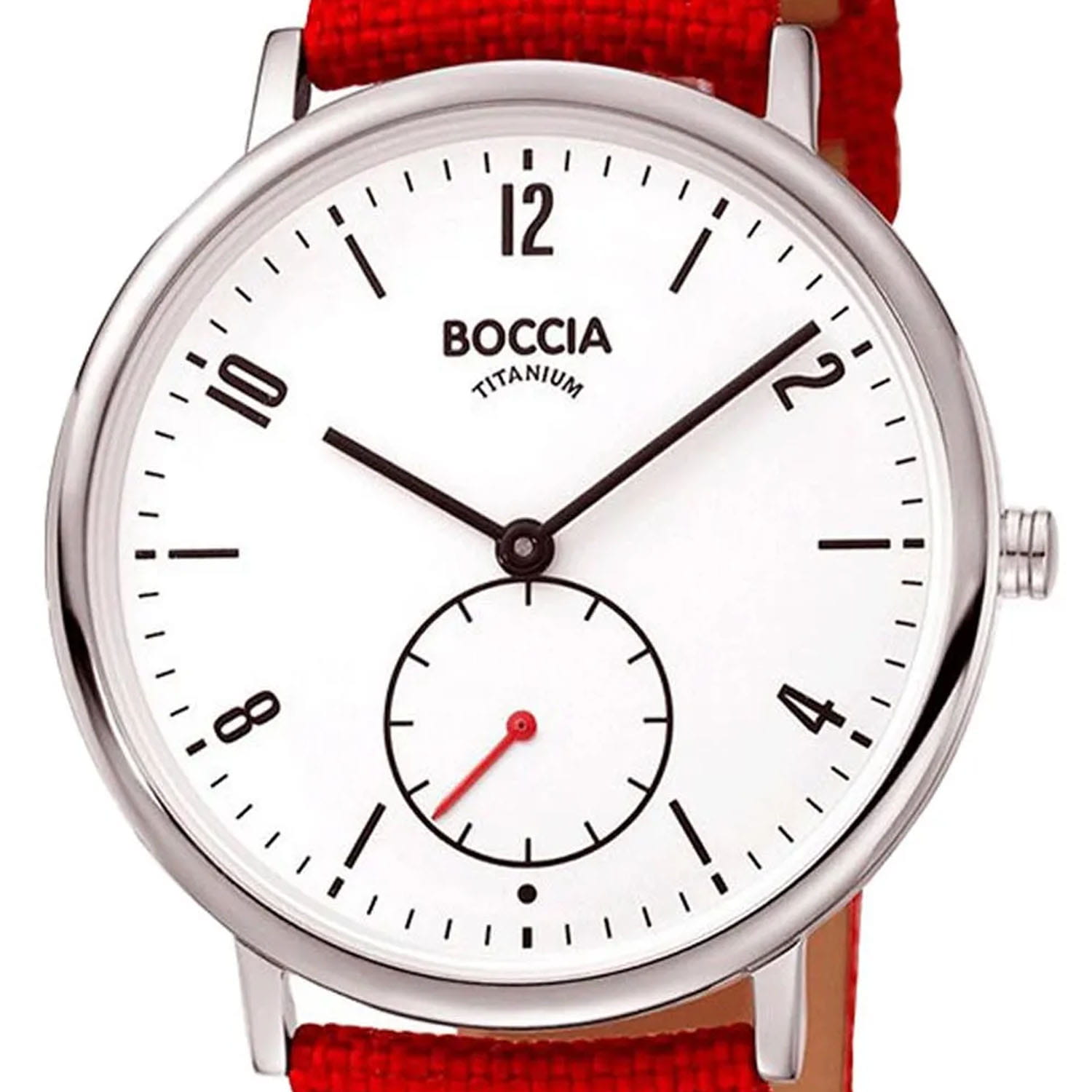 Женские наручные часы Boccia Titanium 3350-01 с надёжным кварцевым механизмом. Корпус выполнен из титана. Практичный текстильный ремешок на кожаном подкладе со стандартной застёжкой. Секундная стрелка на доп. циферблате. Минеральное стеклоМинеральное стеклоМинеральное стекло представляет собой искусственно выращенный минерал кварца. Такое стекло отличается особой устойчивостью к повреждениям и царапинам. Уступает по некоторым качествам сапфировому стеклу. устойчивое к мелким механическим повреждениям. Класс водозащиты: 30 метров, позволит защитить корпус от случайных брызг или капель дождя.
