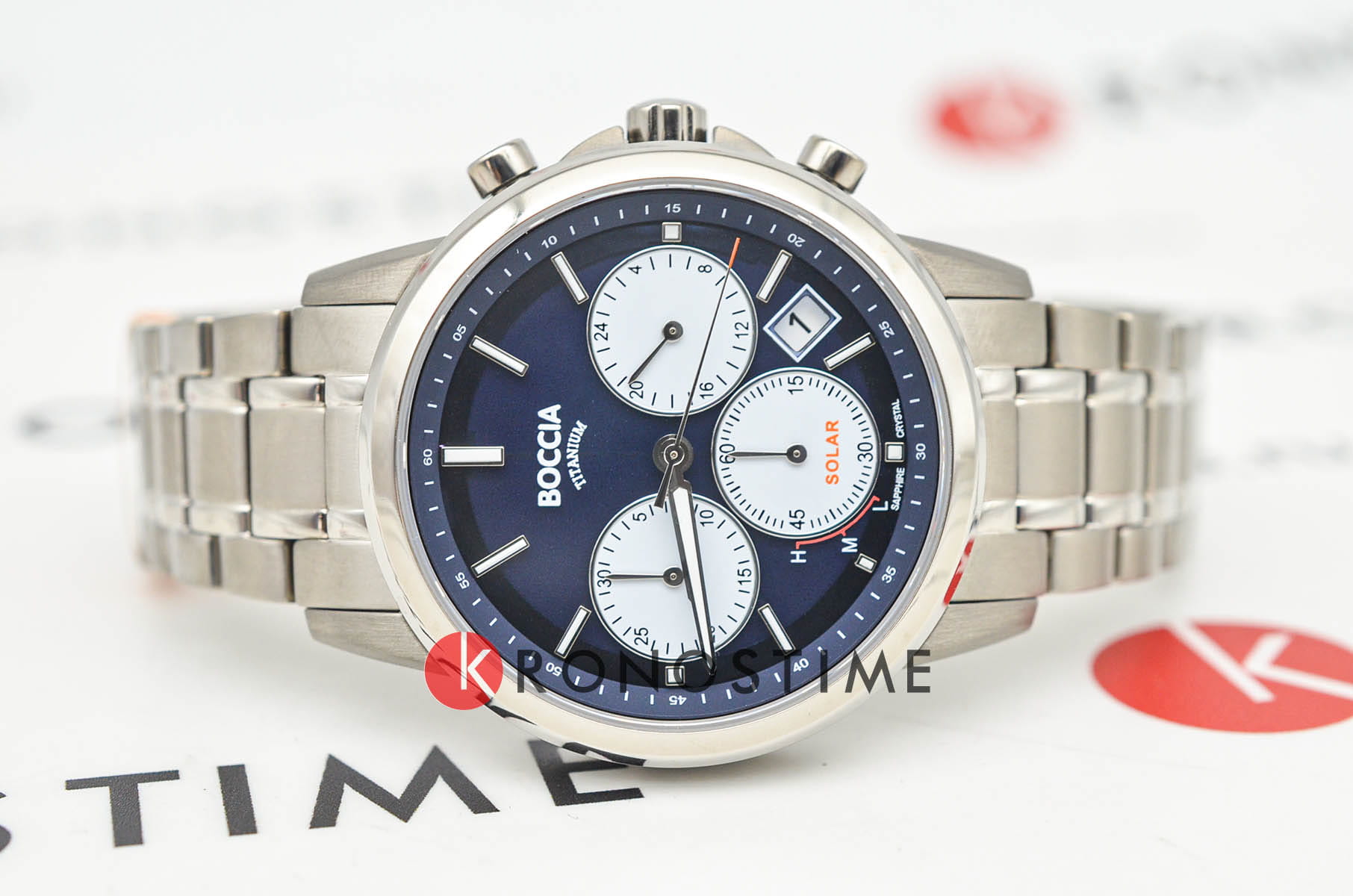 Мужские наручные часы-хронографХронографФункция позволяет измерять отрезки времени с особой точностью: часы, минуты, секунды. Верным признаком хронографа является наличие на циферблате 3 дополнительных окошек-счётчиков. Boccia Titanium 3742-03 с надёжным кварцевым механизмом. Корпус и браслет часов изготовлены из титана. Сапфировое стеклоСапфировое стеклоПрочный и надёжный материал из кристалла сапфира синтетического происхождения, характеризующийся особой твёрдостью и устойчивостью к царапинам и повреждениям. устойчивое к мелким механическим повреждениям. Окошко даты находится между 4 и 5 часов. Стрелки и метки с люминесцентным покрытиемЛюминесцентное покрытиеПозволяет считывать показания времени в темноте. Производители наносят на стрелки, часовые индексы, безель или поверхность циферблата светонакопительный состав, дающий холодное свечение.. Класс водозащиты: 100 метров, позволит плавать, нырять и заниматься другими водными видами спорта. Титановый браслет на раскладной застёжкеРаскладная застёжкаТакой тип застёжки используется только на браслетах из металла. Она никогда не раскрывается полностью, происходит разделение на 2 и более частей. Раскладывающая застёжка снизит вероятность потери часов к минимуму..