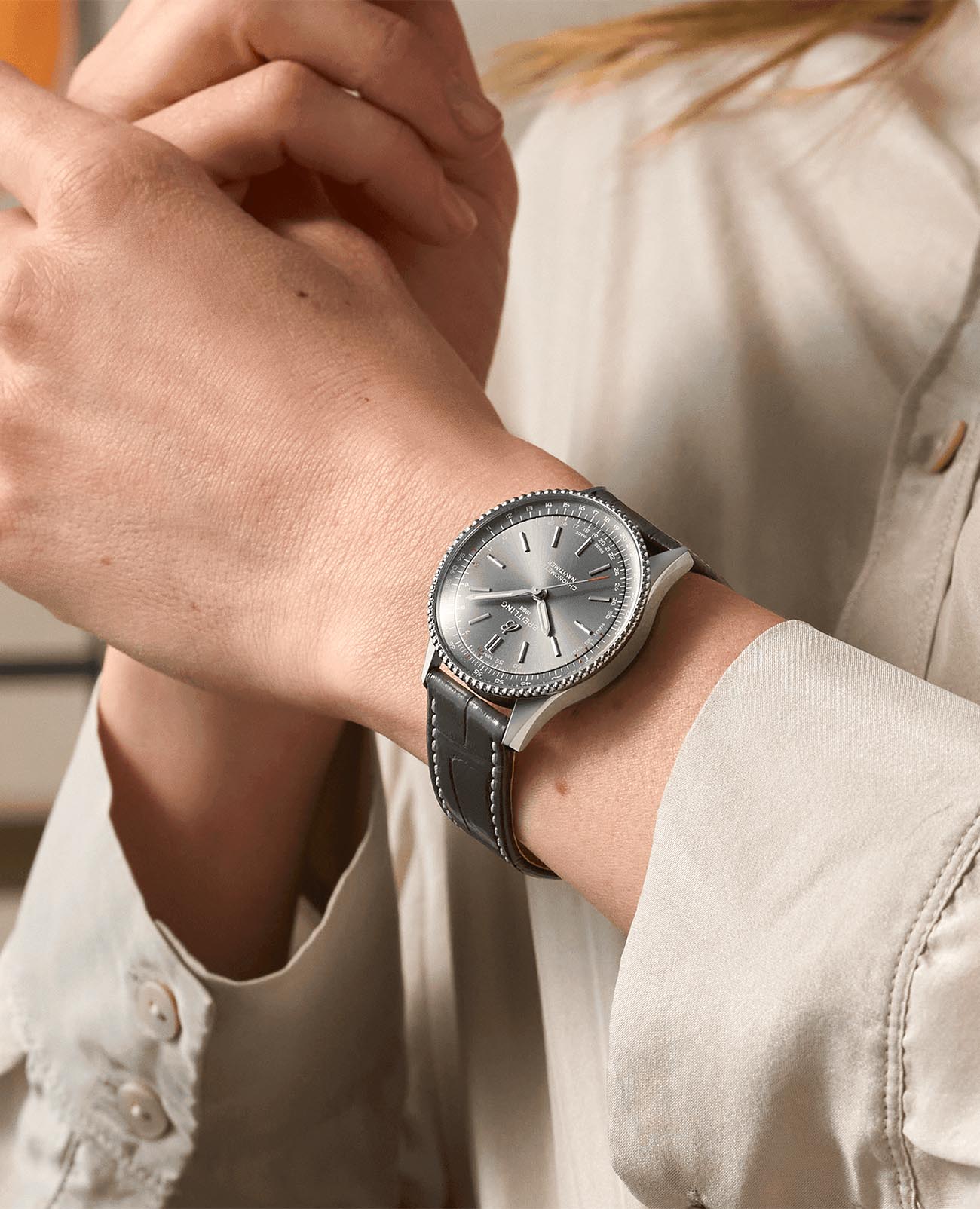 Швейцарские унисекс часы-хронометр Breitling Navitimer Automatic 36 A17327381B1P1, механический механизм (автоматический калибр) с высокой точностью. Сапфировое стеклоСапфировое стеклоПрочный и надёжный материал из кристалла сапфира синтетического происхождения, характеризующийся особой твёрдостью и устойчивостью к царапинам и повреждениям. устойчивое к появлению царапин, обладающее высокой прозрачностью. Класс водозащиты: 30 метров, позволит защитить корпус от случайных брызг или капель дождя. Корпус часов изготовлен из нержавеющей стали. Ремешок из кожи аллигатора с раскладной застёжкойРаскладная застёжкаТакой тип застёжки используется только на браслетах из металла. Она никогда не раскрывается полностью, происходит разделение на 2 и более частей. Раскладывающая застёжка снизит вероятность потери часов к минимуму.. Часы оснащены логарифмической линейкой. Стрелки с люминесцентным покрытиемЛюминесцентное покрытиеПозволяет считывать показания времени в темноте. Производители наносят на стрелки, часовые индексы, безель или поверхность циферблата светонакопительный состав, дающий холодное свечение..