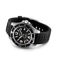 Класс водозащиты: 500 метров, позволит плавать, нырять и заниматься другими водными видами спорта. Корпус часов изготовлен из нержавеющей стали, серебристого цвета. Черный каучуковый ремешок с кнопочной застежкой.