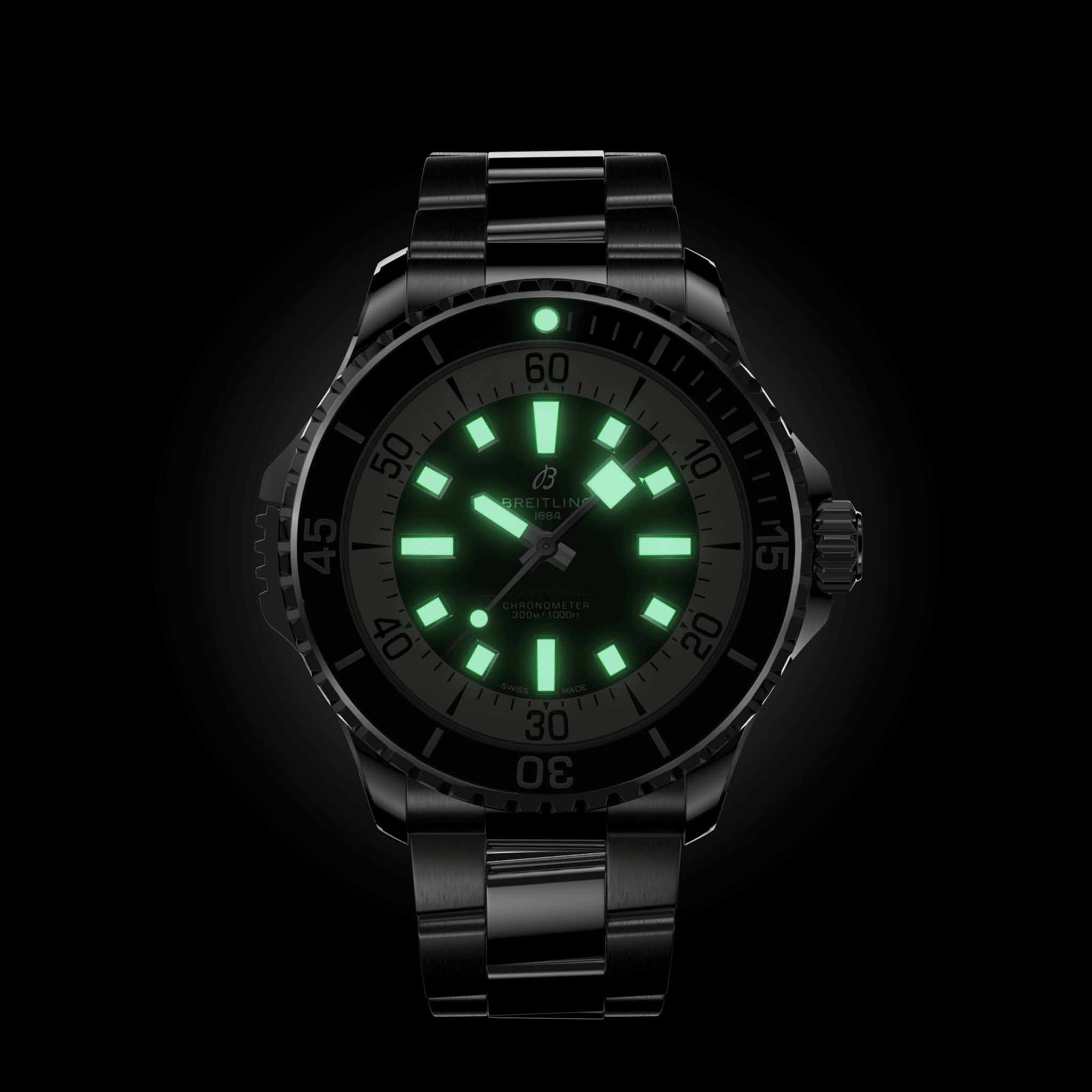 Мужские водонепроницаемые швейцарские часы Breitling Superocean Automatic 46 A17378211B1A1, механический механизм (автоматический калибр) с высокой точностью. Сапфировое стеклоСапфировое стеклоПрочный и надёжный материал из кристалла сапфира синтетического происхождения, характеризующийся особой твёрдостью и устойчивостью к царапинам и повреждениям. устойчивое к появлению царапин, обладающее высокой прозрачностью. Класс водозащиты: 300 метров, позволит плавать, нырять и заниматься другими водными видами спорта. Корпус часов изготовлен из стали. Стальной браслет с раскладной застёжкойРаскладная застёжкаТакой тип застёжки используется только на браслетах из металла. Она никогда не раскрывается полностью, происходит разделение на 2 и более частей. Раскладывающая застёжка снизит вероятность потери часов к минимуму.. Стрелки и метки с люминесцентным покрытиемЛюминесцентное покрытиеПозволяет считывать показания времени в темноте. Производители наносят на стрелки, часовые индексы, безель или поверхность циферблата светонакопительный состав, дающий холодное свечение.. Широкие стрелки и индексы с люминесцентным покрытиемЛюминесцентное покрытиеПозволяет считывать показания времени в темноте. Производители наносят на стрелки, часовые индексы, безель или поверхность циферблата светонакопительный состав, дающий холодное свечение. обеспечивают легкую читаемость под водой. Вращающийся стальной безельБезельВнешний ободок, закрепляющий стекло. В спортивных часах так называется поворотное кольцо с делениями на циферблате, выполняет роль таймера – замеряет отрезки времени на шкале. Неподвижный безель – элемент декора. Однонаправленно вращающийся безель на дайверских часах позволяет фиксировать моменты погружения и выныривания на поверхность. с люминесцентным покрытиемЛюминесцентное покрытиеПозволяет считывать показания времени в темноте. Производители наносят на стрелки, часовые индексы, безель или поверхность циферблата светонакопительный состав, дающий холодное свечение. Superluminova из нержавеющей стали и керамики, защищенный от царапин, никогда не изнашивается и не выцветает.