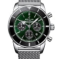 Спортивные и элегантные Superocean Heritage служат символом активного образа жизни, неразрывно связанного с морем. Тираж серии Superocean Heritage, которую представляют надежные классические часы с зеленым циферблатом и контрастными черными счетчиками, ограничен 500 экземплярами. Эта изысканная модель для дайверов отличается необычными стрелками треугольной формы и оснащена вращающимся в одном направлении безелем с полированным керамическим кольцом.