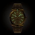 . Браслет на застёжке-бабочке с кнопкамиЗастёжка "бабочка"Такой вид застёжки дополняется предохранителями, помогающими избежать случайного раскрытия браслета. Обладают изящным исполнением. . Стрелки и метки с люминесцентным покрытиемЛюминесцентное покрытиеПозволяет считывать показания времени в темноте. Производители наносят на стрелки, часовые индексы, безель или поверхность циферблата светонакопительный состав, дающий холодное свечение.. Класс водозащиты: 100 метров, позволит плавать, нырять и заниматься другими водными видами спорта. Окошко даты находится в положении 6 часов.