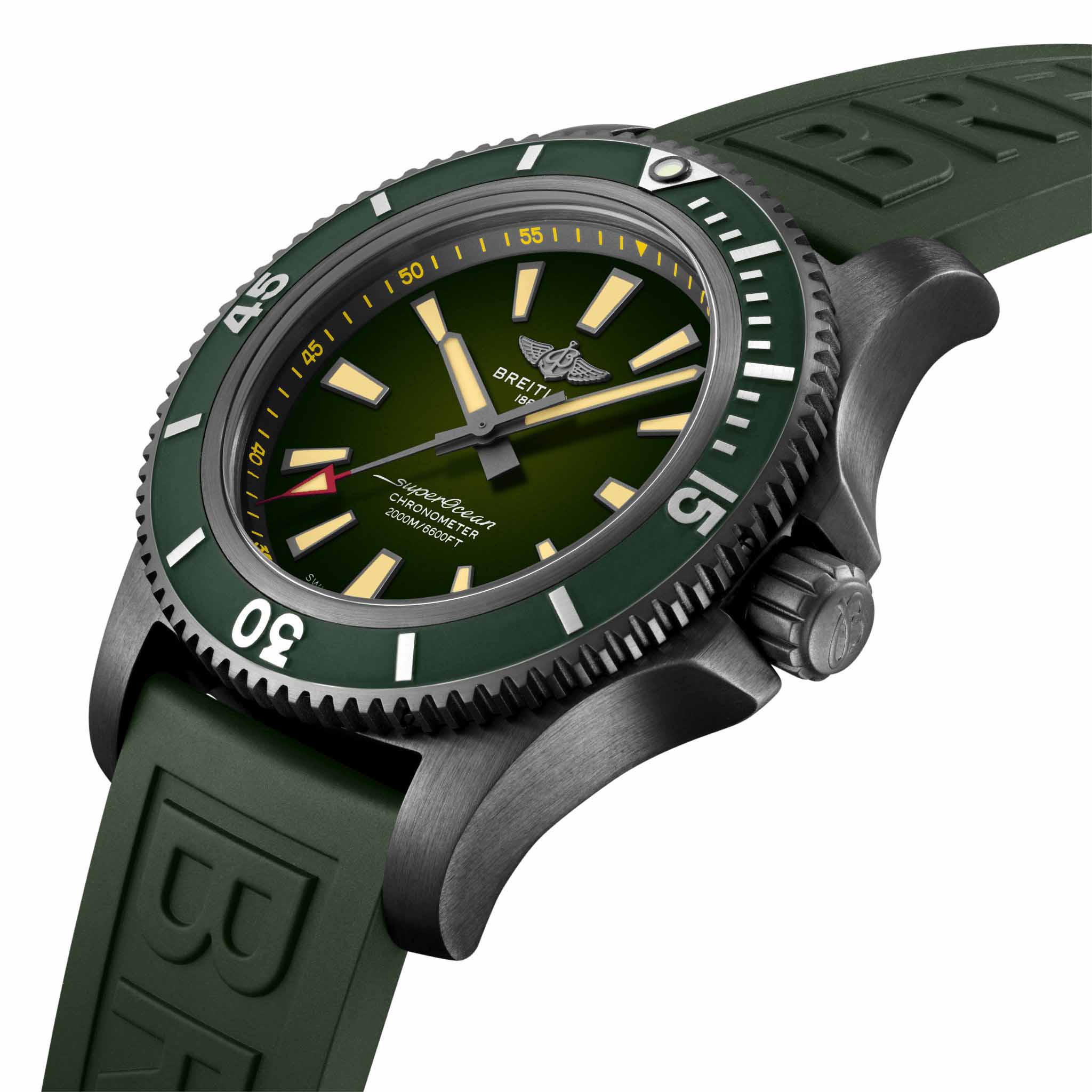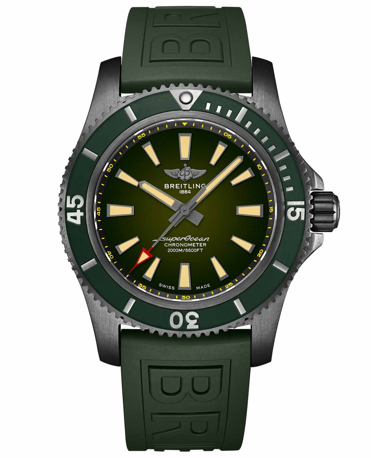 Лимитированные мужские водонепроницаемые швейцарские часы c углеродным покрытием Breitling Superocean Automatic 46 Black Steel M173681A1L1S1, механический механизм (автоматический калибр) с высокой точностью. Сапфировое стеклоСапфировое стеклоПрочный и надёжный материал из кристалла сапфира синтетического происхождения, характеризующийся особой твёрдостью и устойчивостью к царапинам и повреждениям. устойчивое к появлению царапин, обладающее высокой прозрачностью. Класс водозащиты: 2000 метров, позволит плавать, нырять и заниматься другими водными видами спорта. Корпус часов изготовлен из стали с DLC-покрытиемDLC-покрытиеDiamond like carbon - одно из лучших видов покрытия, представляющее собой углерод с алмазными свойствами. На поверхность материала наносятся распавшиеся молекулы углерода, превращающиеся в плёнку из алмазоподобных связей, которая перенимает твёрдость алмаза.. Силиконовый ремешок с раскладной застёжкойРаскладная застёжкаТакой тип застёжки используется только на браслетах из металла. Она никогда не раскрывается полностью, происходит разделение на 2 и более частей. Раскладывающая застёжка снизит вероятность потери часов к минимуму.. Стрелки и метки с люминесцентным покрытиемЛюминесцентное покрытиеПозволяет считывать показания времени в темноте. Производители наносят на стрелки, часовые индексы, безель или поверхность циферблата светонакопительный состав, дающий холодное свечение.. Широкие стрелки и индексы с люминесцентным покрытиемЛюминесцентное покрытиеПозволяет считывать показания времени в темноте. Производители наносят на стрелки, часовые индексы, безель или поверхность циферблата светонакопительный состав, дающий холодное свечение. обеспечивают легкую читаемость под водой. Вращающийся стальной безельБезельВнешний ободок, закрепляющий стекло. В спортивных часах так называется поворотное кольцо с делениями на циферблате, выполняет роль таймера – замеряет отрезки времени на шкале. Неподвижный безель – элемент декора. Однонаправленно вращающийся безель на дайверских часах позволяет фиксировать моменты погружения и выныривания на поверхность. с люминесцентным покрытиемЛюминесцентное покрытиеПозволяет считывать показания времени в темноте. Производители наносят на стрелки, часовые индексы, безель или поверхность циферблата светонакопительный состав, дающий холодное свечение. Superluminova из нержавеющей стали и керамики, защищенный от царапин, никогда не изнашивается и не выцветает. Смелый Superocean Automatic 46 не только готов к испытаниям на морских глубинах (до 200 бар / 2000 метров), но и привлечет тех, чьи приключения происходят немного ближе к берегу. Это издание ограничено тиражом в 200 экземпляров.