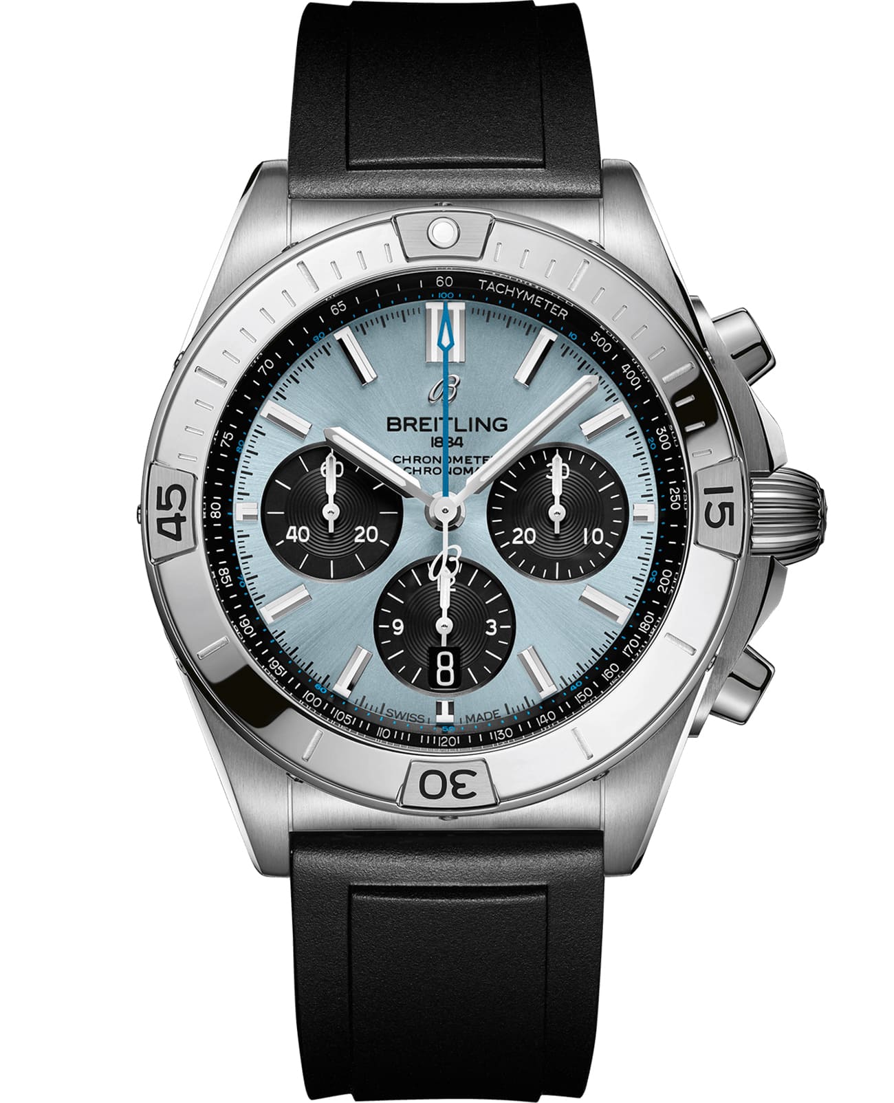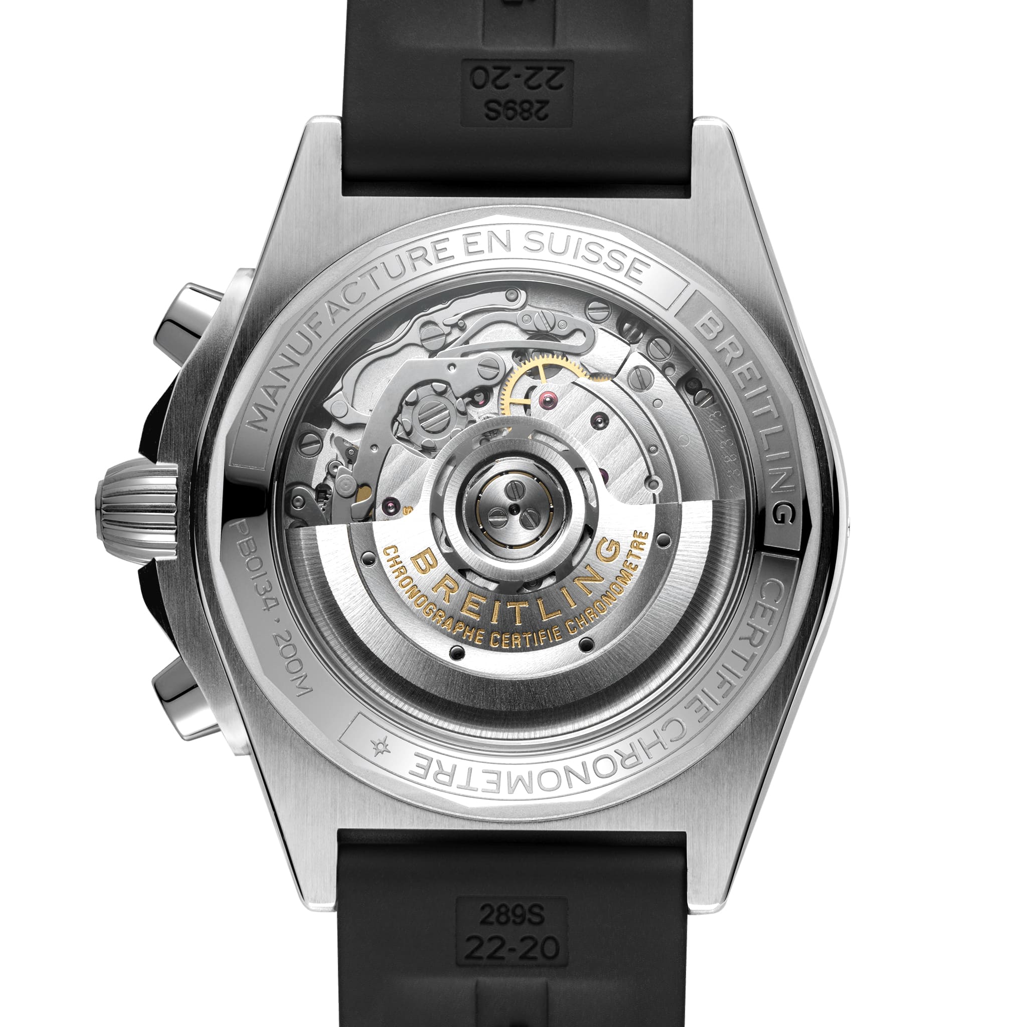 Часы оснащены мануфактурным механизмом Breitling 01, сертифицированным Швейцарским институтом официального тестирования хронометров (COSC), и предлагаются в комплекте с каучуковым ремешком.