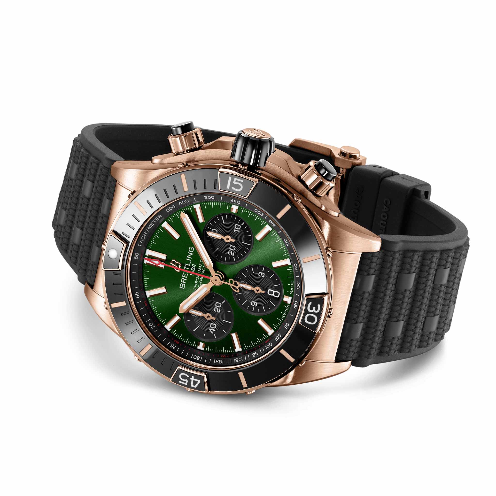 Обладающие наиболее смелым дизайном из всех моделей коллекции Chronomat, часы Super Chronomat отличаются кармической инкрустацией на безеле, кнопках хронографа и заводной головке. Кроме того, их дополняет каучуковый ремешок в стиле Rouleaux. Эти универсальные спортивные часы подчеркнут ваш безупречный вкус. Модель Super Chronomat представлена в нескольких цветовых вариациях и выполнена из различных материалов: от нержавеющей стали до 18-каратного красного золота.