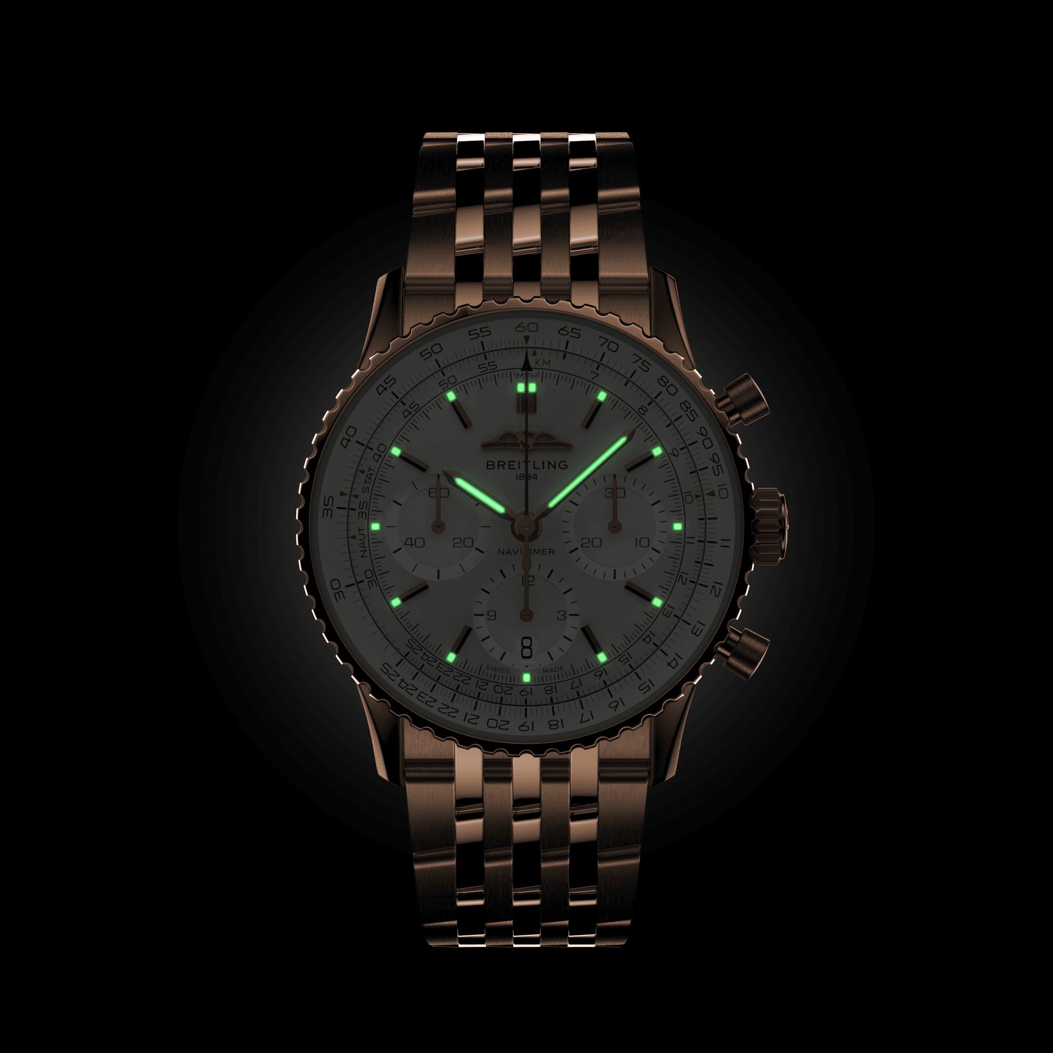 Мужские швейцарские часы-хронографХронографФункция позволяет измерять отрезки времени с особой точностью: часы, минуты, секунды. Верным признаком хронографа является наличие на циферблате 3 дополнительных окошек-счётчиков. с секундомеромСекундомерСекундоме́р — прибор, способный измерять интервалы времени с точностью до долей секунды. Breitling Navitimer B01 Chronograph 41 RB0139211G1R1, механический механизм (автоматический калибр) с высокой точностью. Сапфировое стеклоСапфировое стеклоПрочный и надёжный материал из кристалла сапфира синтетического происхождения, характеризующийся особой твёрдостью и устойчивостью к царапинам и повреждениям. с антибликовым покрытием устойчивое к появлению царапин, обладающее высокой прозрачностью. Класс водозащиты: 30 метров, позволит защитить корпус от случайных брызг или капель дождя. Корпус и браслет часов изготовлены из 18-каратного золота18-каратное золотоОбозначение по каратной системе пробирования, оно показывает, сколько драгоценного металла содержится в изделии. 18 карат - в составе 75% чистого золота, соответствует 750 пробе.