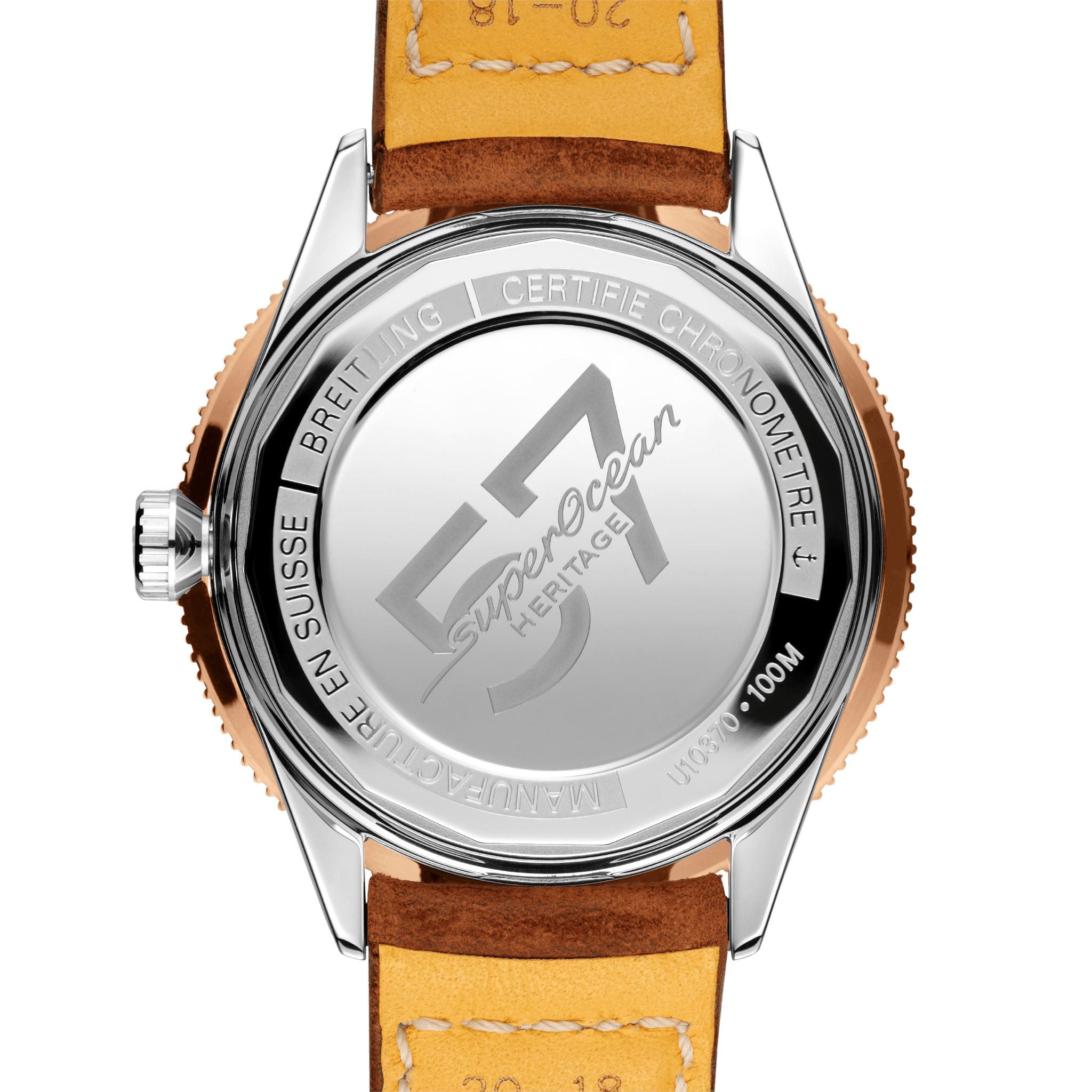Часы Superocean Heritage ‘57 предлагаются в комплекте с плетеным браслетом или черным, коричневым либо золотистым ремешком из телячьей кожи с классической или раскладной застежкой из нержавеющей стали.