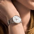 на застёжке-бабочке с кнопкамиЗастёжка "бабочка"Такой вид застёжки дополняется предохранителями, помогающими избежать случайного раскрытия браслета. Обладают изящным исполнением. . Стрелки с люминесцентным покрытиемЛюминесцентное покрытиеПозволяет считывать показания времени в темноте. Производители наносят на стрелки, часовые индексы, безель или поверхность циферблата светонакопительный состав, дающий холодное свечение.. БезельБезельВнешний ободок, закрепляющий стекло. В спортивных часах так называется поворотное кольцо с делениями на циферблате, выполняет роль таймера – замеряет отрезки времени на шкале. Неподвижный безель – элемент декора. Однонаправленно вращающийся безель на дайверских часах позволяет фиксировать моменты погружения и выныривания на поверхность. из золота 18 карат. Циферблат украшен бриллантами. Часы оснащены логарифмической линейкой.