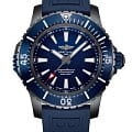 Эта модель часов дополнена каучуковым ремешком синего цвета с классической застежкой из нержавеющей стали с DLC-покрытием. Обладая водонепроницаемостью до 30 бар (300 метров), эта модель отлично подходит как для дайвинга, так и для плавания или серфинга.
