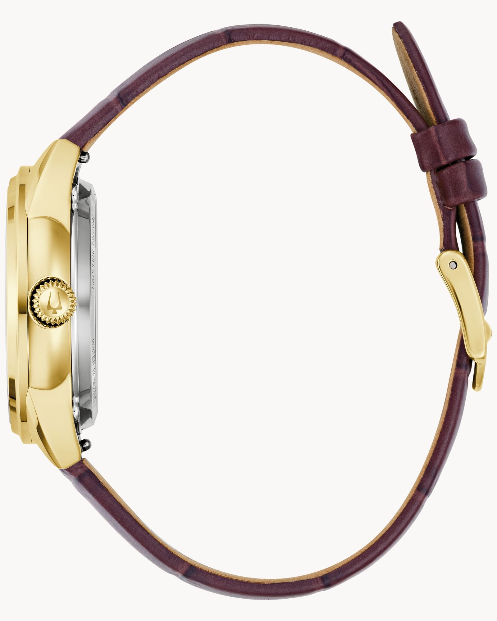 Женские механические часы с автоподзаводом Bulova Automatic Ladies 97L179 – отражающий идеальное сочетание современного дизайна, надёжности и функциональности. Элегантный облик станет превосходным завершением образа, наделив его индивидуальным характером. Корпус из нержавеющей стали с PVD-покрытиемPVDУльтратонкое покрытие наносится в технике вакуумного напыления, сочетает в себе нитрид титана особой прочности со слоем золота или оксида хрома. Несёт в себе декоративную или защитную функцию. золотистого цвета, диаметром 34 мм идеально сбалансирован и элегантен. Защиту циферблата обеспечивает прочное сапфировое стеклоСапфировое стеклоПрочный и надёжный материал из кристалла сапфира синтетического происхождения, характеризующийся особой твёрдостью и устойчивостью к царапинам и повреждениям. с антибликовым покрытиемАнтибликовое покрытиеСлой оксида металла в 0,13-0,3 микрон, благодаря которому стекло часов не бликует и не отражает свет. Антибликовое покрытие уменьшает отражение света в 10 раз, обеспечивая отличную читаемость показателей циферблата. гарантирующее четкость показаний. Циферблат из белого перламутра украшен золотистыми стрелками и метками, а также цветочным апертуром, открывающим вид на 21-каратный автоматический механизм. Кожаный ремешок на стандартной застежке обеспечивает комфортное ношение. Водозащита 30 метров позволит защитить корпус от случайных брызг или капель дождя. Эта модель – отличный выбор для тех, кто ищет сочетание стиля, качества и функциональности. Часы станут не только полезным аксессуаром, но и выразительным элементом вашего имиджа.