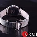 Модель с брендированной символикой на синем циферблате сделана с учётом модных тенденций. Она выполнена из стали 316L, браслет сделан из многочисленных переплетающихся звеньев. Швейцарский кварцевый калибр ETA 901.001 обеспечивает абсолютную точность показателей времени. Минеральное стекло устойчиво к царапинам.