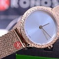 Гармонично сочетаются фактурный безельБезельВнешний ободок, закрепляющий стекло. В спортивных часах так называется поворотное кольцо с делениями на циферблате, выполняет роль таймера – замеряет отрезки времени на шкале. Неподвижный безель – элемент декора. Однонаправленно вращающийся безель на дайверских часах позволяет фиксировать моменты погружения и выныривания на поверхность. с браслетом плетения Mesh. Привлекательно выглядит игра оттенков серебристого циферблата «солнечные лучи» и PVD-покрытияPVDУльтратонкое покрытие наносится в технике вакуумного напыления, сочетает в себе нитрид титана особой прочности со слоем золота или оксида хрома. Несёт в себе декоративную или защитную функцию. цвета розового золота. Швейцарский кварцевый калибр от ETA. Минеральное стекло. Водонепроницаемость до 3 бар.