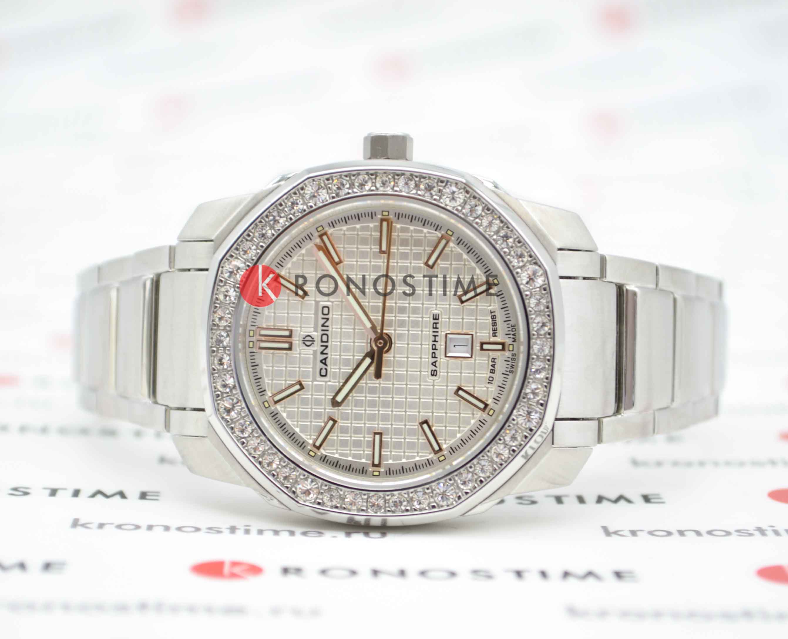 Женские наручные часы Candino Elegance C4756/1 с надёжным кварцевым механизмом. Корпус и браслет часов изготовлены из нержавеющей стали. Сапфировое стеклоСапфировое стеклоПрочный и надёжный материал из кристалла сапфира синтетического происхождения, характеризующийся особой твёрдостью и устойчивостью к царапинам и повреждениям. повышенной прозрачности, устойчивое к мелким механическим повреждениям. Стальной браслет на раскладной застёжкеРаскладная застёжкаТакой тип застёжки используется только на браслетах из металла. Она никогда не раскрывается полностью, происходит разделение на 2 и более частей. Раскладывающая застёжка снизит вероятность потери часов к минимуму.. Стрелки и метки с люминесцентным покрытиемЛюминесцентное покрытиеПозволяет считывать показания времени в темноте. Производители наносят на стрелки, часовые индексы, безель или поверхность циферблата светонакопительный состав, дающий холодное свечение.. БезельБезельВнешний ободок, закрепляющий стекло. В спортивных часах так называется поворотное кольцо с делениями на циферблате, выполняет роль таймера – замеряет отрезки времени на шкале. Неподвижный безель – элемент декора. Однонаправленно вращающийся безель на дайверских часах позволяет фиксировать моменты погружения и выныривания на поверхность. инкрустирован кристаллами. Класс водозащиты: 100 метров, позволит плавать, нырять и заниматься другими водными видами спорта. Окошко даты находится в положении 6 часов.