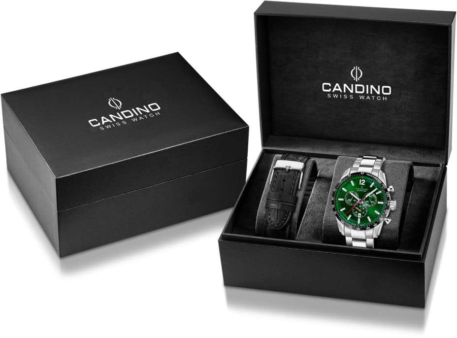 Мужские наручные часы-хронографХронографФункция позволяет измерять отрезки времени с особой точностью: часы, минуты, секунды. Верным признаком хронографа является наличие на циферблате 3 дополнительных окошек-счётчиков. Candino C4757/C из коллекции Gents Sport сочетают в себе спортивный дизайн и надежность швейцарских технологий. Модель обладает круглым корпусом диаметром 45 мм, изготовленным из нержавеющей стали , что обеспечивает высокую устойчивость к коррозии и внешним воздействиям . Браслет выполнен из нержавеющей стали с раскладной застежкойРаскладная застёжкаТакой тип застёжки используется только на браслетах из металла. Она никогда не раскрывается полностью, происходит разделение на 2 и более частей. Раскладывающая застёжка снизит вероятность потери часов к минимуму., гарантирующей комфортное ношение и безопасность . Серебристый циферблат оснащен окном даты и функцией люминесцентного покрытияЛюминесцентное покрытиеПозволяет считывать показания времени в темноте. Производители наносят на стрелки, часовые индексы, безель или поверхность циферблата светонакопительный состав, дающий холодное свечение., что позволяет легко считывать показания времени даже в темноте . Для защиты используется сапфировое стеклоСапфировое стеклоПрочный и надёжный материал из кристалла сапфира синтетического происхождения, характеризующийся особой твёрдостью и устойчивостью к царапинам и повреждениям., обеспечивающее прочную защиту от царапин и долговечность . Часы работают на кварцевом механизме, проверенном годами качеством и точностью . Модель также является хронографом, оснащенным функцией секундомераСекундомерСекундоме́р — прибор, способный измерять интервалы времени с точностью до долей секунды., делая ее идеальной для активного образа жизни. Водонепроницаемость часов достигает 10 атмосфер (100 метров), что позволяет использовать их во время плавания и других водных видов спорта .