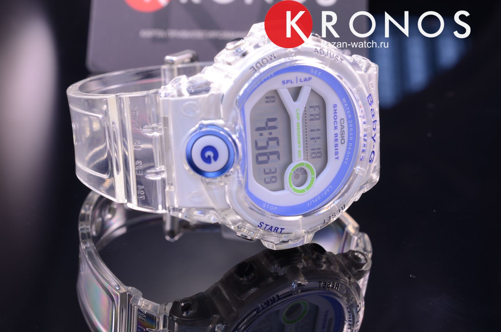 Модель в полупрозрачном исполнении и яркими деталями позволит всегда находиться в центре внимания. Часы оснащены функцией Lap Memory 60™, благодаря которой появляется возможность сохранять до 60 записей, содержащих информацию о дате пробежки и показателей времени круга. Это позволяет значительно повысить эффективность тренировок. Японский кварцевый механизм работает от батарейки, рассчитанной на 7 лет работы. Противоударный корпусУдаропрочный корпусМеханизм заключён в корпус, выполненный из современных материалов, устойчивых к ударам, механическим повреждениям и падению с высоты: инновационный пластик, карбон, нержавеющая сталь, титан. и ремешок из пластика. Минеральное стекло. Включение и выключение звука кнопок. Электролюминесцентная подсветкаЭлектролюминесцентная подсветкаЭлектролюминесцентная панель устанавливается под ЖК-экраном часов, при нажатии кнопки электричество преобразуется в свет за счёт подачи напряжения на атомы фосфора, такой тип подсветки позволяет освещать весь циферблат.. Водостойкость 20 бар. Таймер с автоповтором, 3 будильника, секундомер, отображение времени двух часовых поясов одновременно, календарь. Габариты: 49,1 x 45 x 13,5 мм.