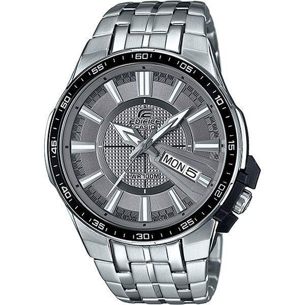 Мужские классические наручные часы Casio Edifice надежные и практичные. Кварцевый японский механизм Miyota. Часы оснащены календарем. Циферблат серого цвета с контрастными элементами дизайна. Стрелки и индексы с светонакопительным нанесением. Корпус и браслет выполнены из высококачественной стали с антикоррозийными свойствами. Минеральное стекло устойчиво к появлению царапин. Водонепроницаемость (10 Бар). Идеально подходит для  плавания с маской и трубкой.