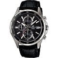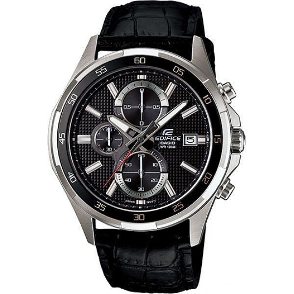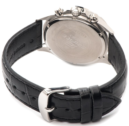 Стильный, мужские наручные часы Casio Edifice надежные и практичные. Кварцевый японский механизм Miyota. Точность хода не хуже -10 +15 сек./в месяц. Часы оснащены функцией хронографа. Циферблат черного цвета с контрастными элементами дизайна. Стрелки и индексы с светонакопительным нанесением. Корпус выполнен из высококачественной стали с антикоррозийными свойствами. Ремешок из натуральной кожи, черного цвета. Минеральное стекло устойчиво к появлению царапин. Водонепроницаемость 100М. В часах можно плавать. Степень водонепроницаемости не является величиной, эквивалентной функциональной рабочей глубине.