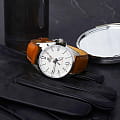 Светлый циферблат дополнен крупными часовыми метками и стрелками контрастного оттенка. Спортивного стиля добавляет секундная стрелка с оранжевым наконечником. Стильно смотрится лаконичный коричневый ремешок из натуральной кожи. Надёжный корпус из нержавеющей стали 316L защищает кварцевый механизм от ударов. Заводная головка с защитой. Люминесцентная подсветкаЛюминесцентное покрытиеПозволяет считывать показания времени в темноте. Производители наносят на стрелки, часовые индексы, безель или поверхность циферблата светонакопительный состав, дающий холодное свечение.. Водостойкость до 10 бар. Минеральное стеклоМинеральное стеклоМинеральное стекло представляет собой искусственно выращенный минерал кварца. Такое стекло отличается особой устойчивостью к повреждениям и царапинам. Уступает по некоторым качествам сапфировому стеклу.. Отображение даты. Габариты: 48 x 42 x 10,9 мм.