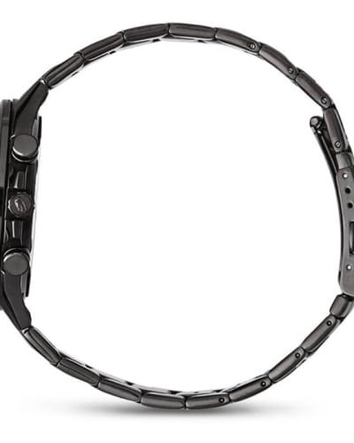 Наручные часы выполнены в спортивном стиле, тёмный циферблат, дополненный контрастными элементами, идеально гармонирует с любой одеждой. Брендовый кварцевый хронографХронографФункция позволяет измерять отрезки времени с особой точностью: часы, минуты, секунды. Верным признаком хронографа является наличие на циферблате 3 дополнительных окошек-счётчиков. получает питание от аккумулятора, срок службы которого составит 5 лет. Сапфировое стекло характеризуется повышенной устойчивостью к царапинам. Люминесцентная подсветка NeobriteЛюминесцентное покрытиеПозволяет считывать показания времени в темноте. Производители наносят на стрелки, часовые индексы, безель или поверхность циферблата светонакопительный состав, дающий холодное свечение.. Водонепроницаемость 100 метров. Чёрное IP-покрытиеIP-покрытиеМетод ионного напыления. Демонстрирует повышенную устойчивость к истиранию, окислению и химическим веществам. Под воздействием высокого давления и температуры около 1500°C молекулы металла надёжно соединяются с частицами корпуса часов.. Функция секундомера, отображение даты. Габариты: 50,5 x 45,6 x 9,5 мм.